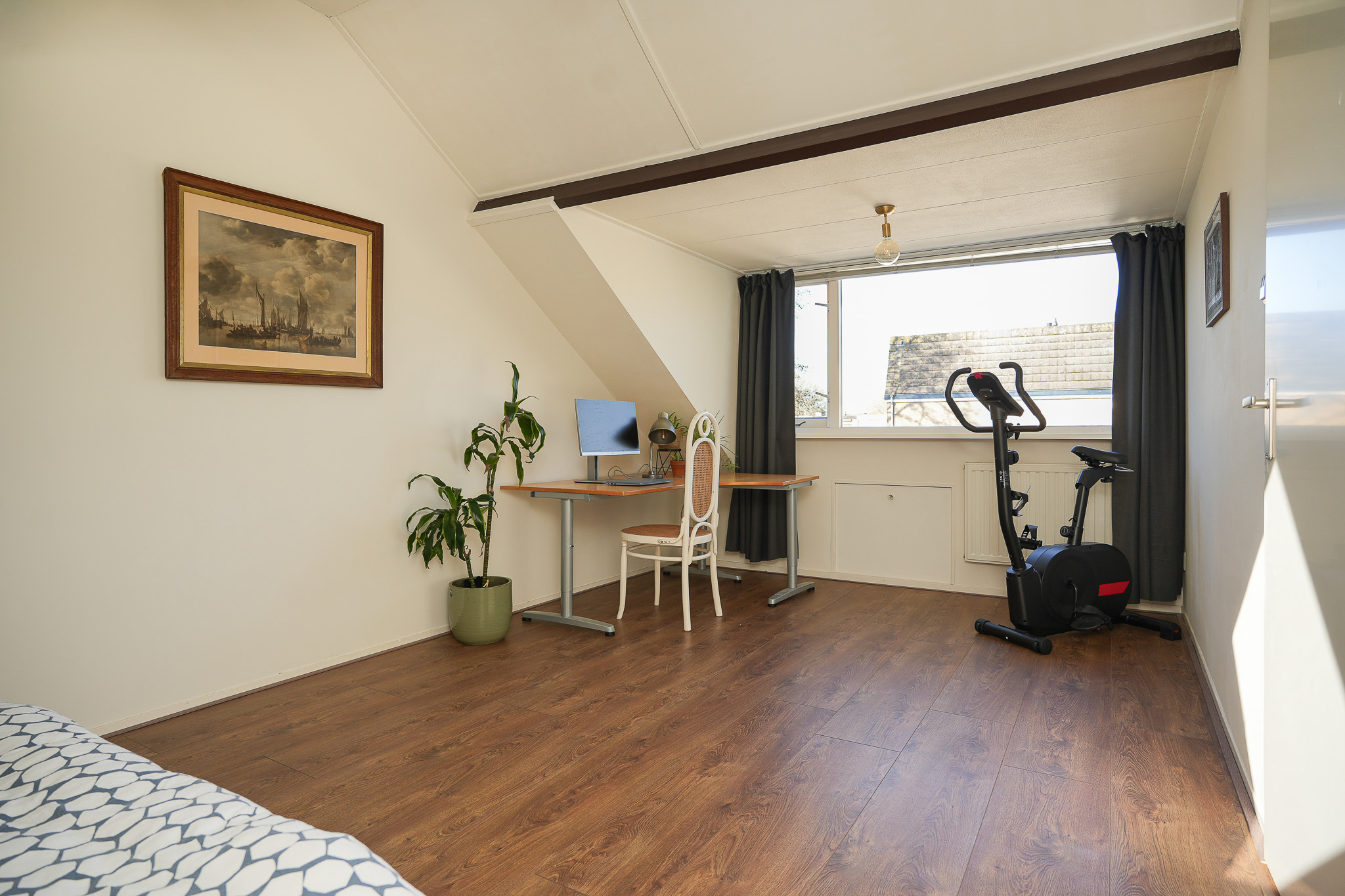 De tweede verdieping biedt nog een ruime vierde slaapkamer. Daarnaast vind je hier de overloop, een technische ruimte en extra bergruimte. Deze verdieping is een waardevolle aanvulling op het huis en biedt volop mogelijkheden, bijvoorbeeld als slaapkamer, werkkamer of hobbyruimte.