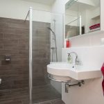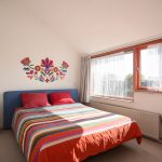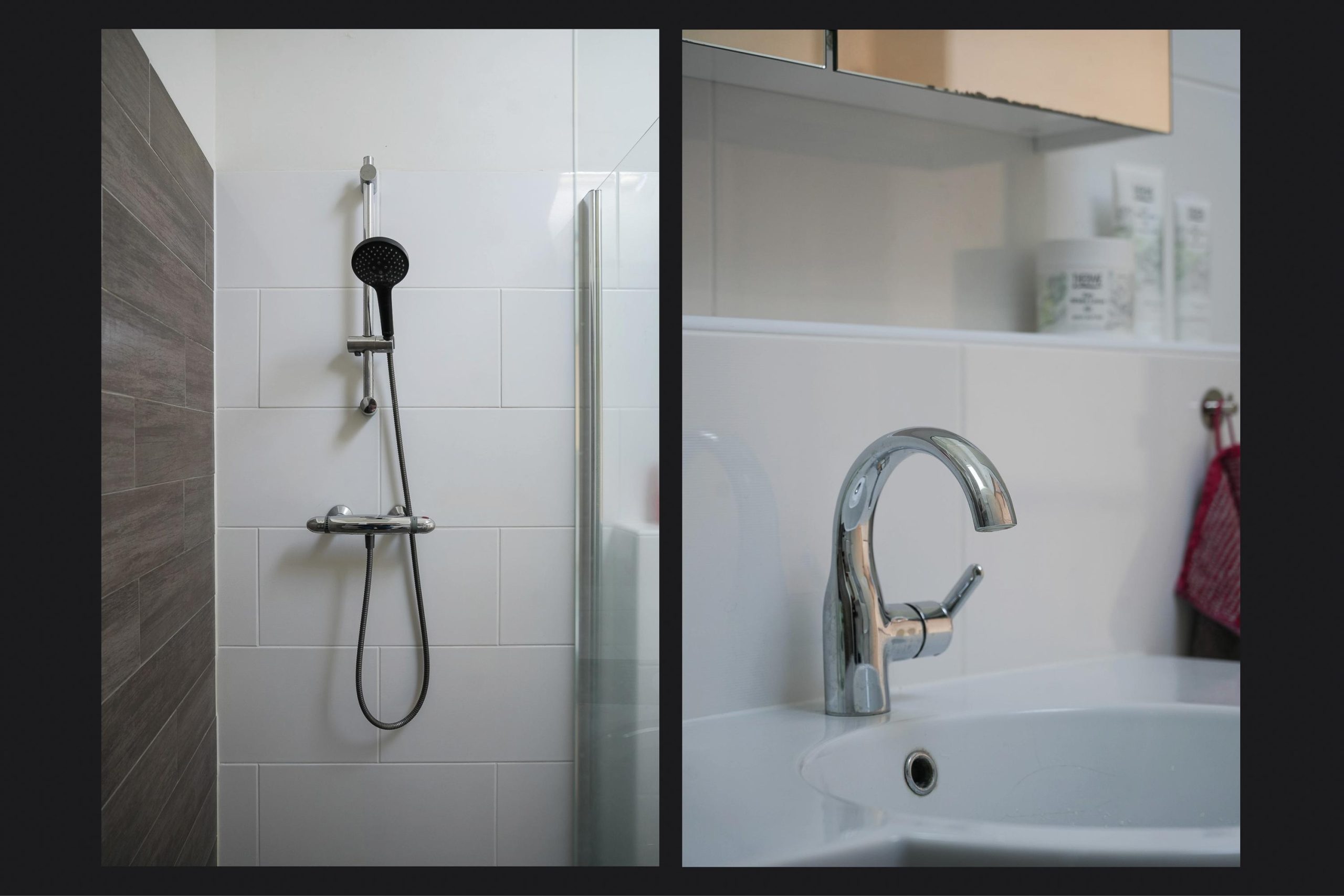 De badkamer is verzorgd en compleet, met een inloopdouche, wastafel, toilet, wasmachine- en drogeraansluiting en vloerverwarming. Zowel de badkamer als de overloop hebben daglicht via Velux dakramen.
