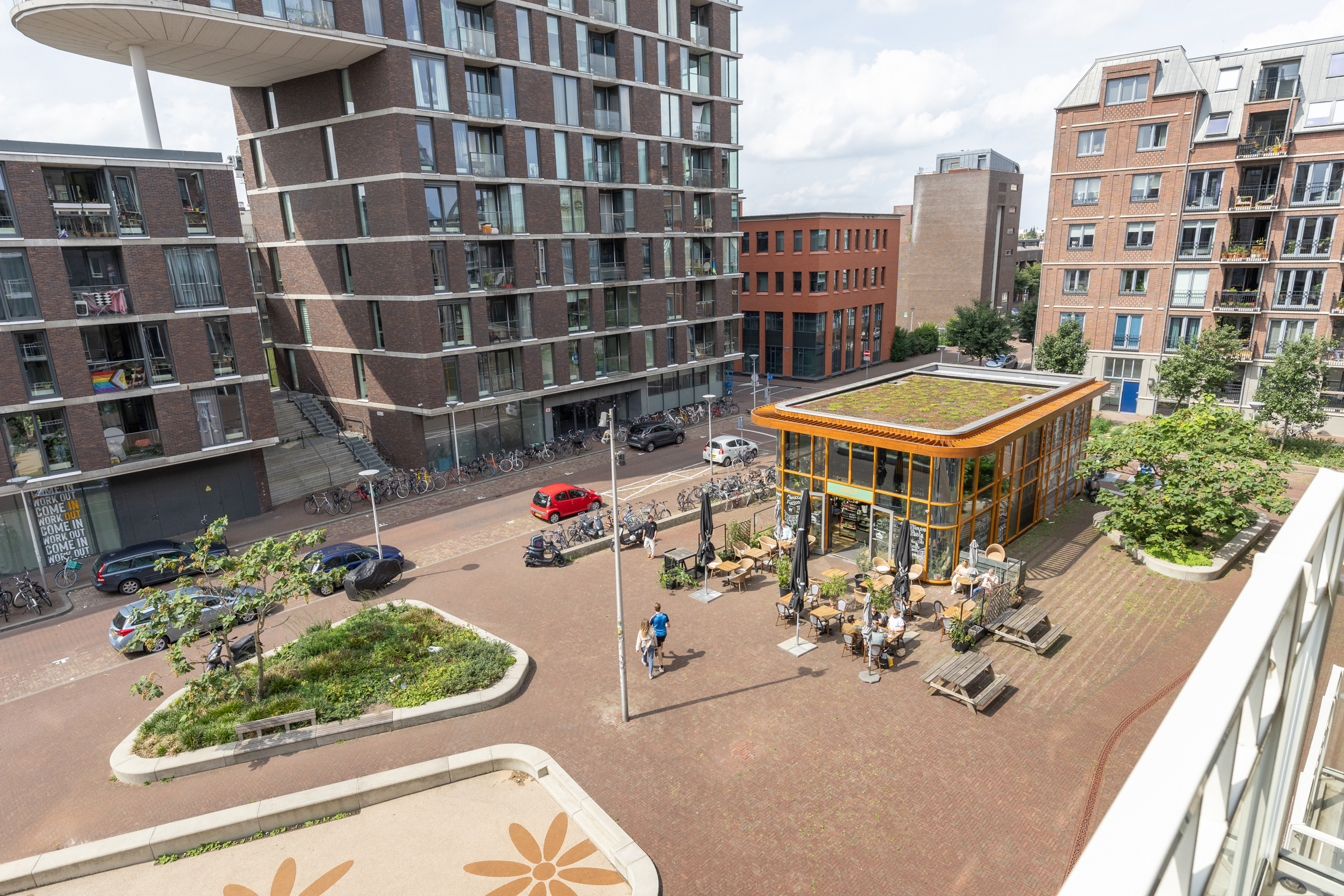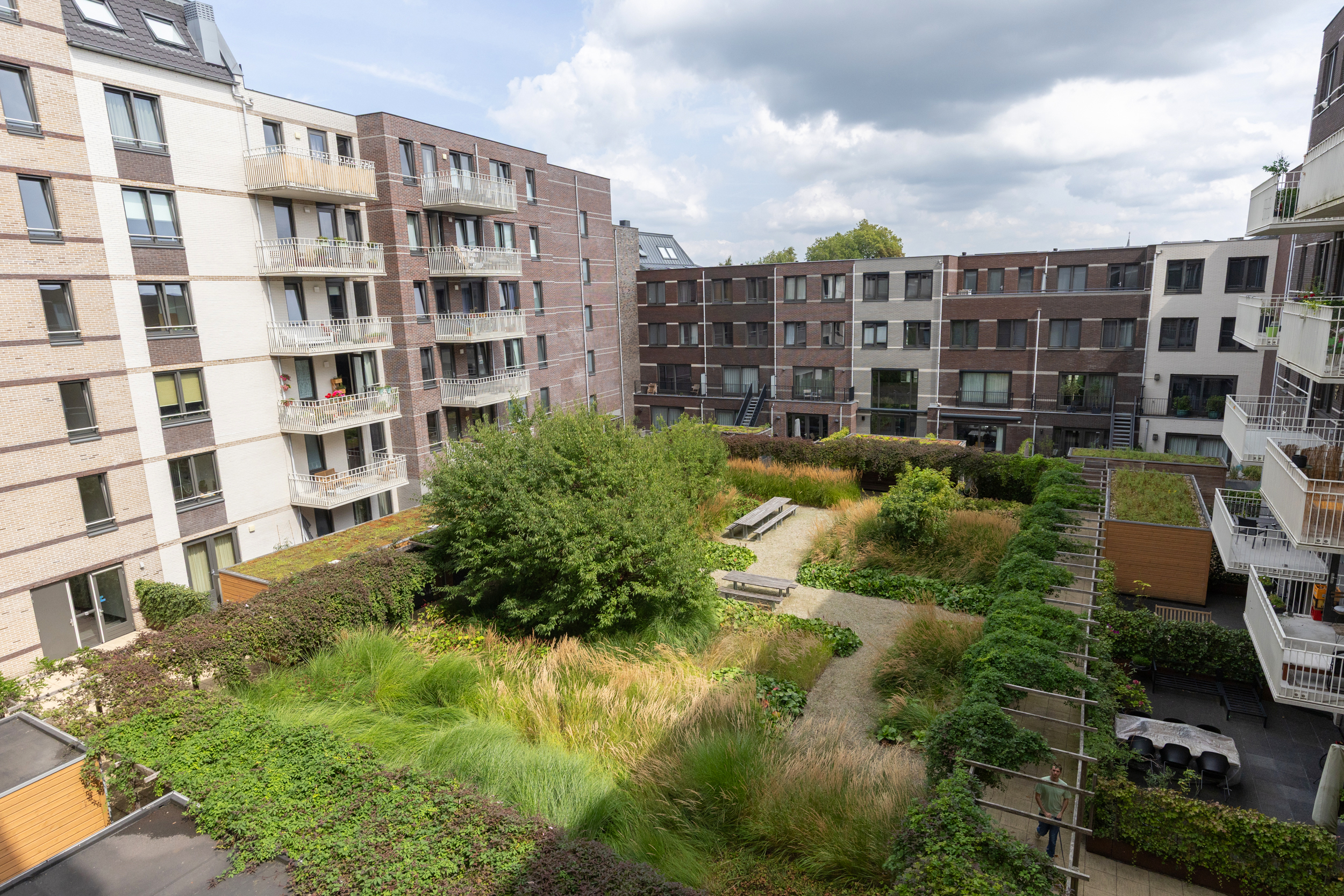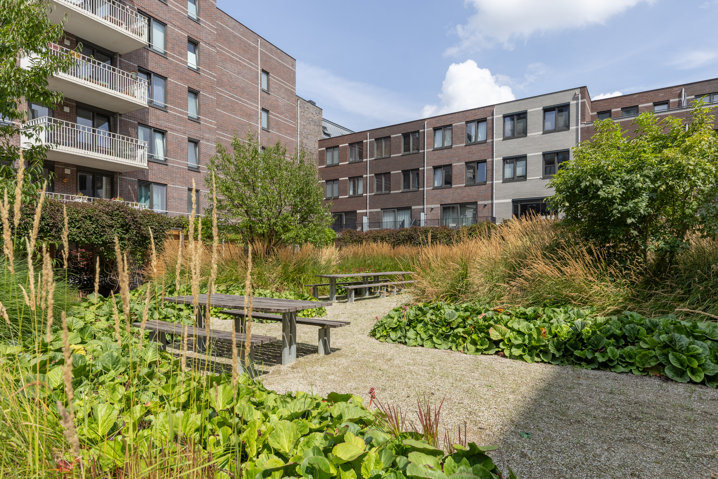 Zomers lang genieten op je eigen balkon op het zuidwesten? Dat kan hier. De ligging zorgt voor zon vanaf de middag tot in de avond. Een fijne plek om te ontspannen met wijds uitzicht op het pleintje en de skyline van Utrecht. De gemeenschappelijke binnentuin op de begane grond is een oase van rust en groen, waar buren elkaar ontmoeten en de sfeer gemoedelijk is.