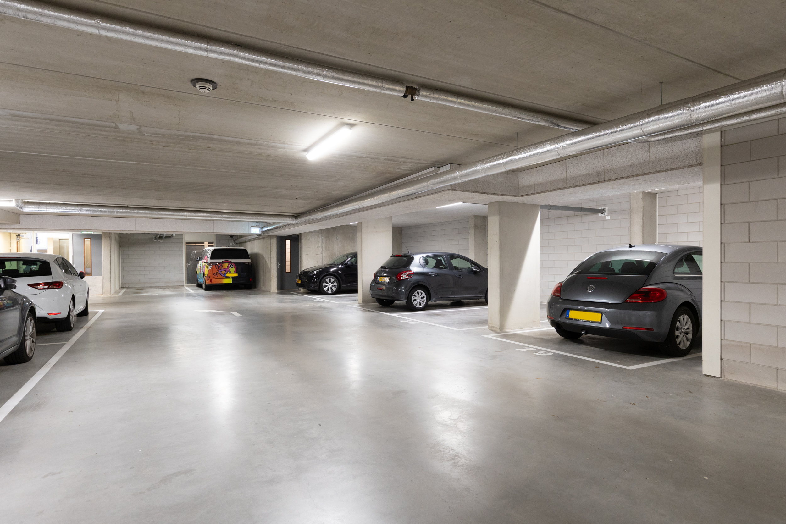 Naast de berging in de woning zelf beschik je over een tweede, ruime berging in het gebouw. Deze tweede berging is ideaal voor fietsen, voorraad of hobbyspullen. Ook is er een eigen parkeerplaats in de afgesloten parkeerkelder. De VvE onderzoekt momenteel de mogelijkheid om laadpalen voor elektrische auto’s te plaatsen.