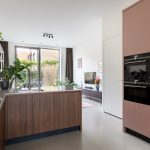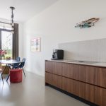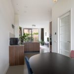 Begane grond, plafondhoogte ca. 3,17 meter Je stapt binnen in de ruime hal, waar volop plek is voor een garderobe en schoenenkast. Vanuit hier kom je direct in het eetgedeelte met open keuken. Deze vormt het hart van de begane grond. De keuken is op maat gemaakt door timmerbedrijf Rijksen en uitgerust met hoogwaardige apparatuur zoals een Bora inductiekookplaat met geïntegreerde afzuiging, combioven, tweede oven, koelkast, vaatwasser en een Quooker met ingebouwde zeeppomp. Aan de achterzijde van de woning bevindt zich het zitgedeelte, waar de hoge schuifpui van circa drie meter niet alleen veel daglicht binnenbrengt, maar in combinatie met het extra hoge plafond ook een bijzonder ruimtelijk gevoel geeft. Je kijkt uit op de achtertuin op het oosten, waar je tot het middaguur van de zon geniet. Achter de tuin ligt een goed onderhouden gemeenschappelijke tuin van circa 40 m². Er is ook een achterom aanwezig. In de woonkamer is een handige trapkast, ideaal voor extra opbergruimte