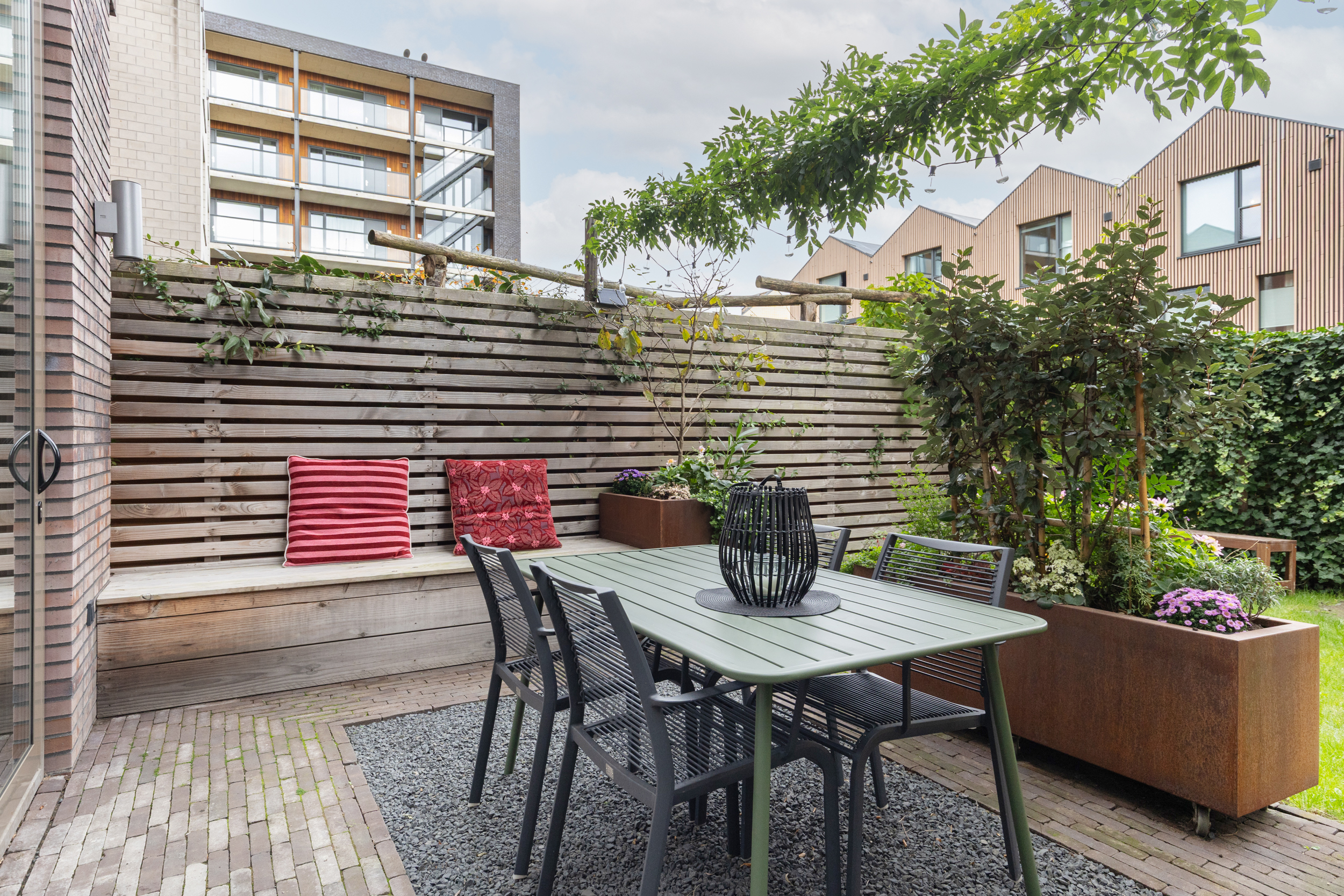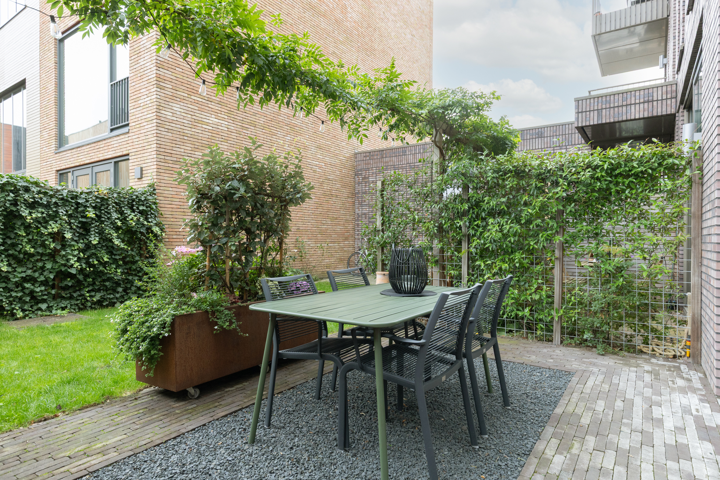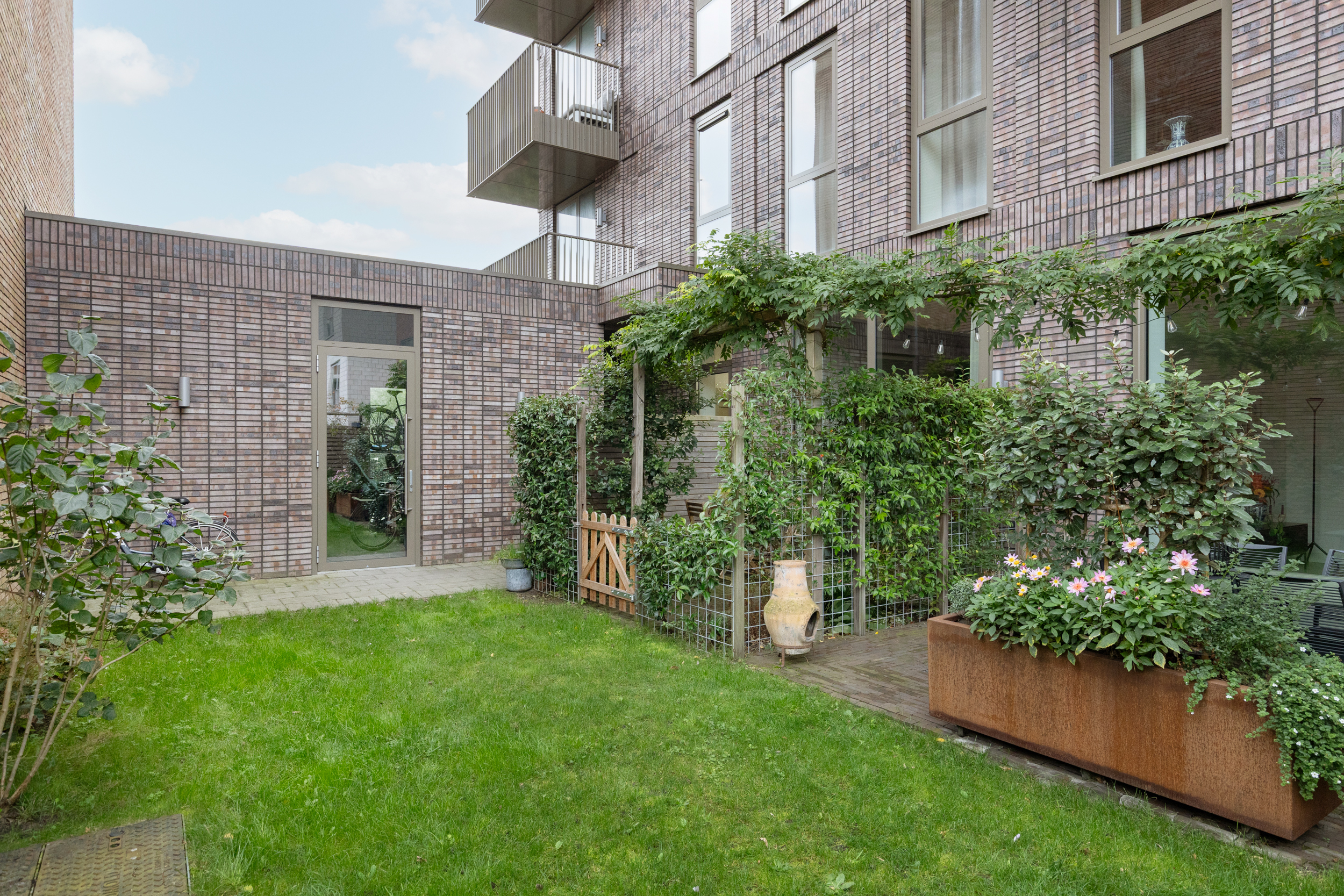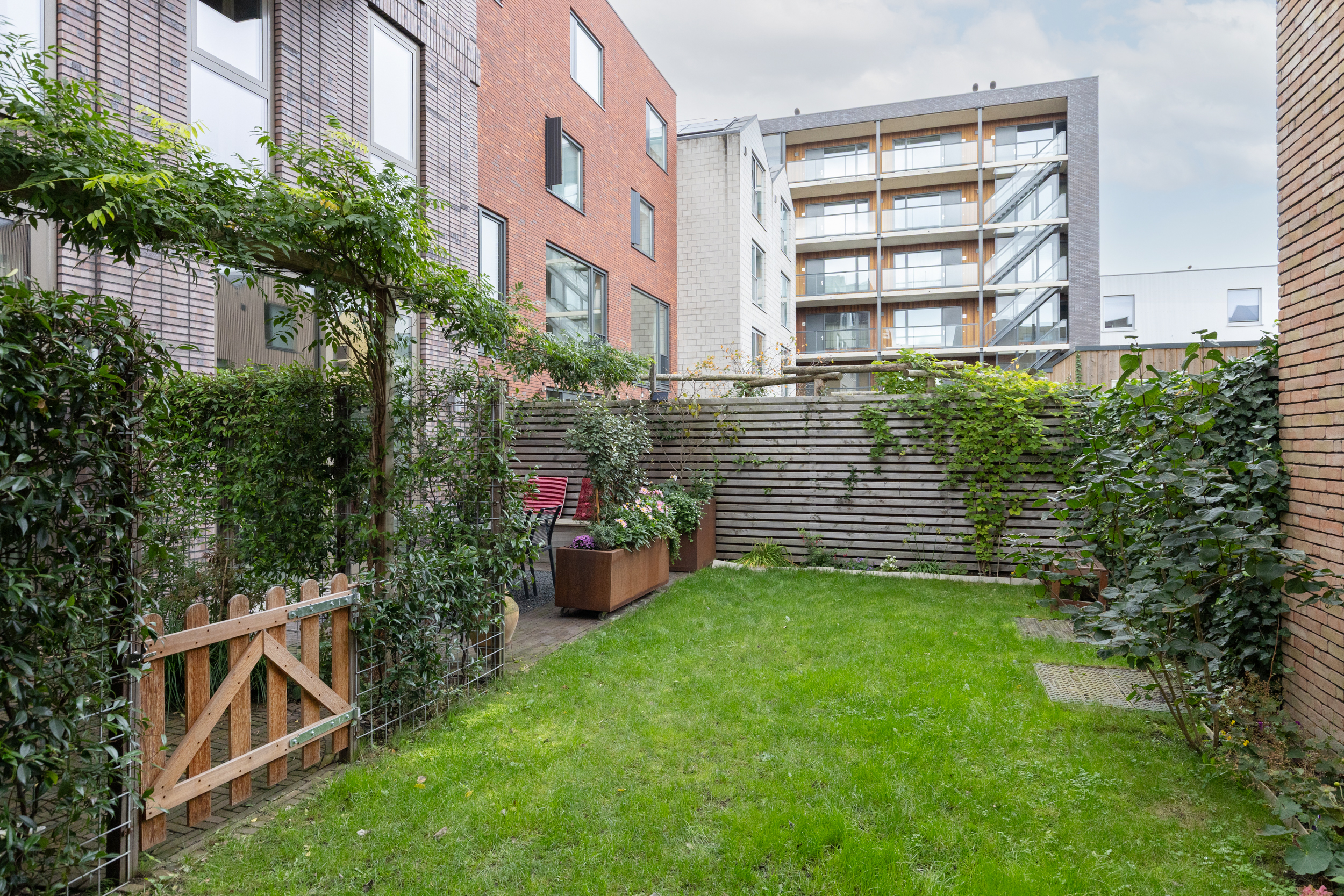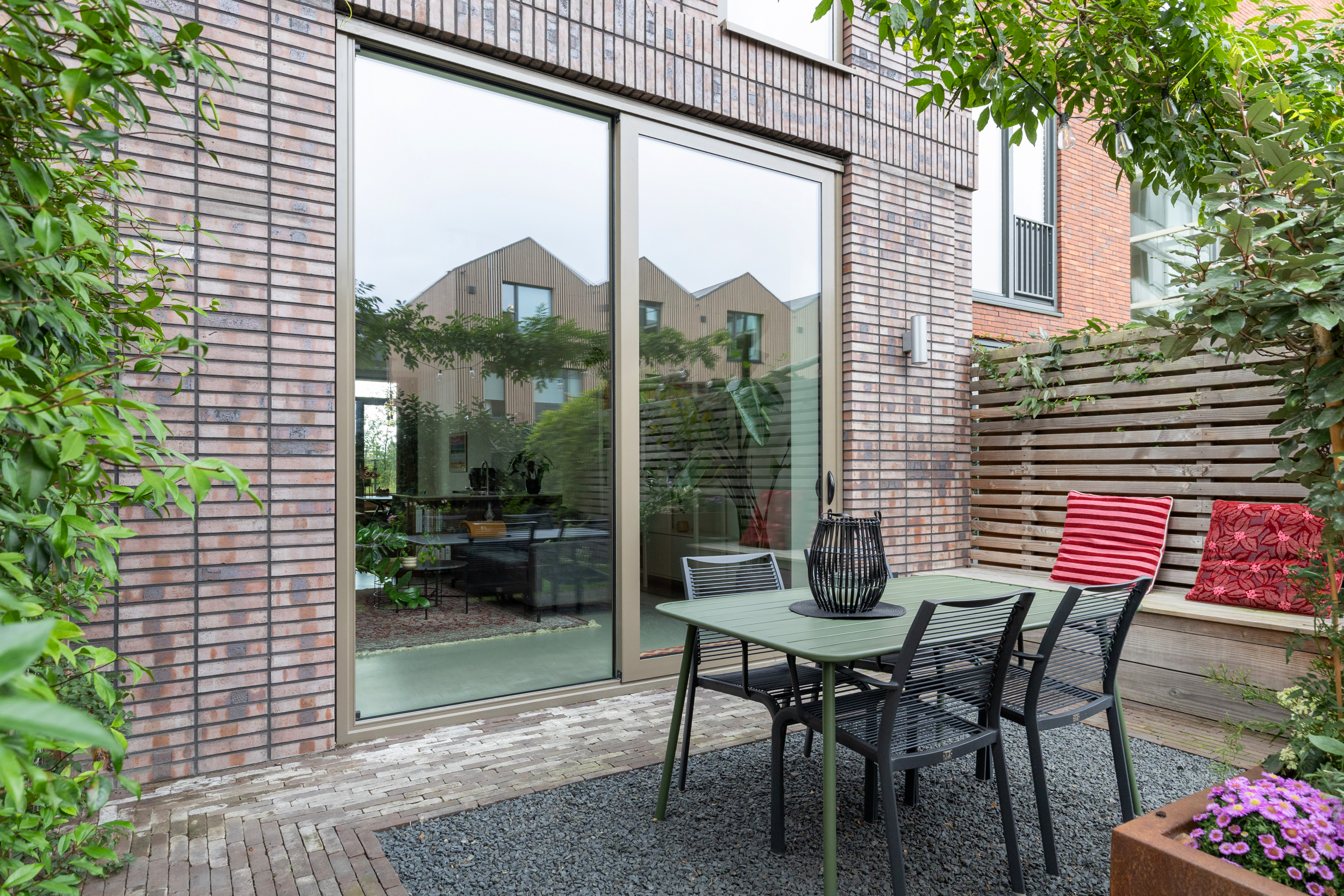 Grote raampartijen en een slimme indeling zorgen voor een open en aangename leefruimte. De woning is ontwikkeld als CPO project, Collectief Particulier Opdrachtgeverschap. In dit type project hadden de eerste bewoners veel invloed op de indeling en afwerking. Hier woon je in een huis met een eigen karakter en unieke uitstraling. Buitenruimte is hier een pluspunt. Aan de voorzijde beschik je over circa 1,5 meter gebruikersruimte en een balkon op de eerste verdieping, waar je heerlijk kunt zitten in de middag en avondzon. Aan de achterzijde ligt een privé achtertuin, direct grenzend aan een groene en verzorgde gemeenschappelijke binnentuin. Zo is er op elk moment van de dag een fijne buitenplek om te ontspannen en te genieten van het zonlicht.