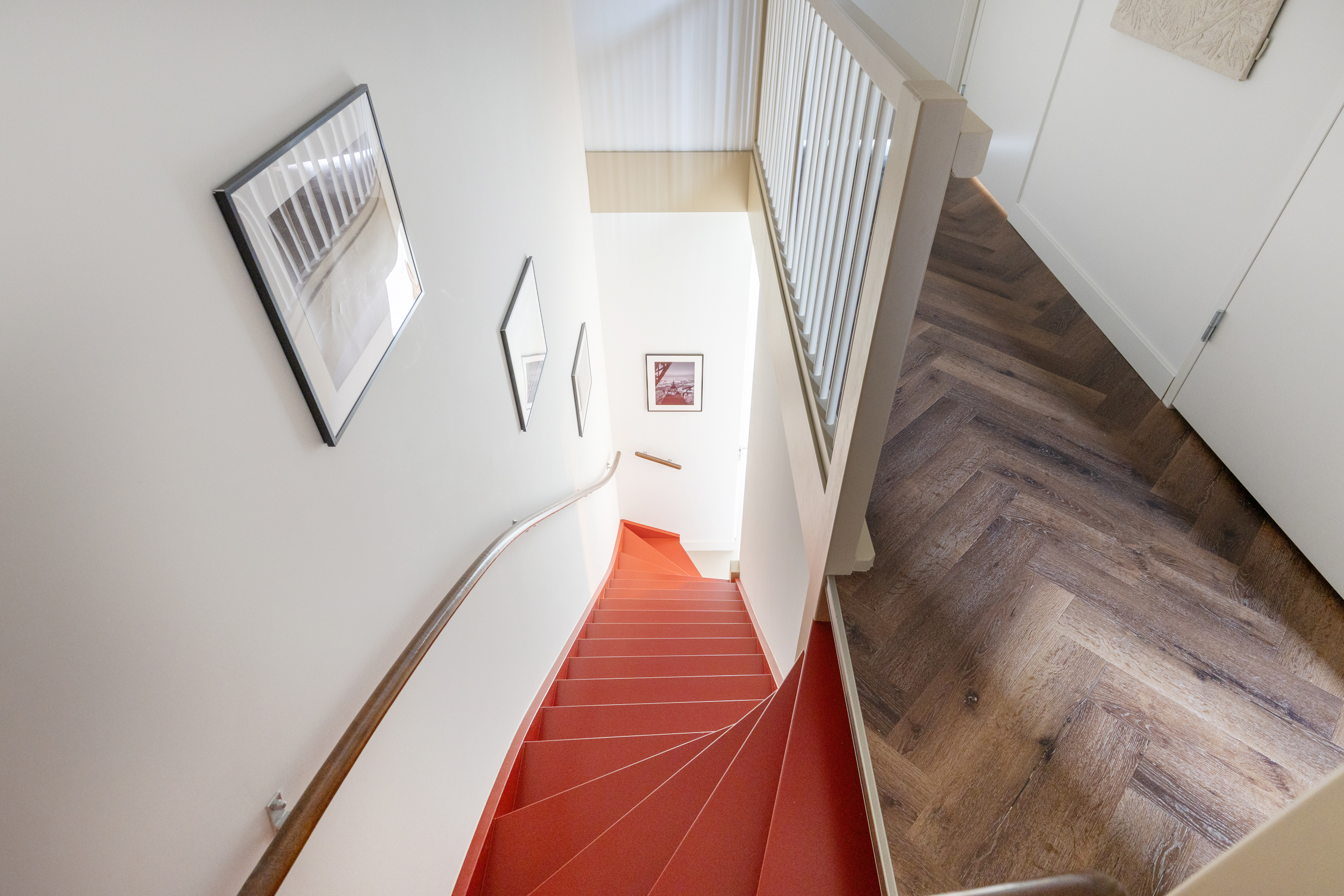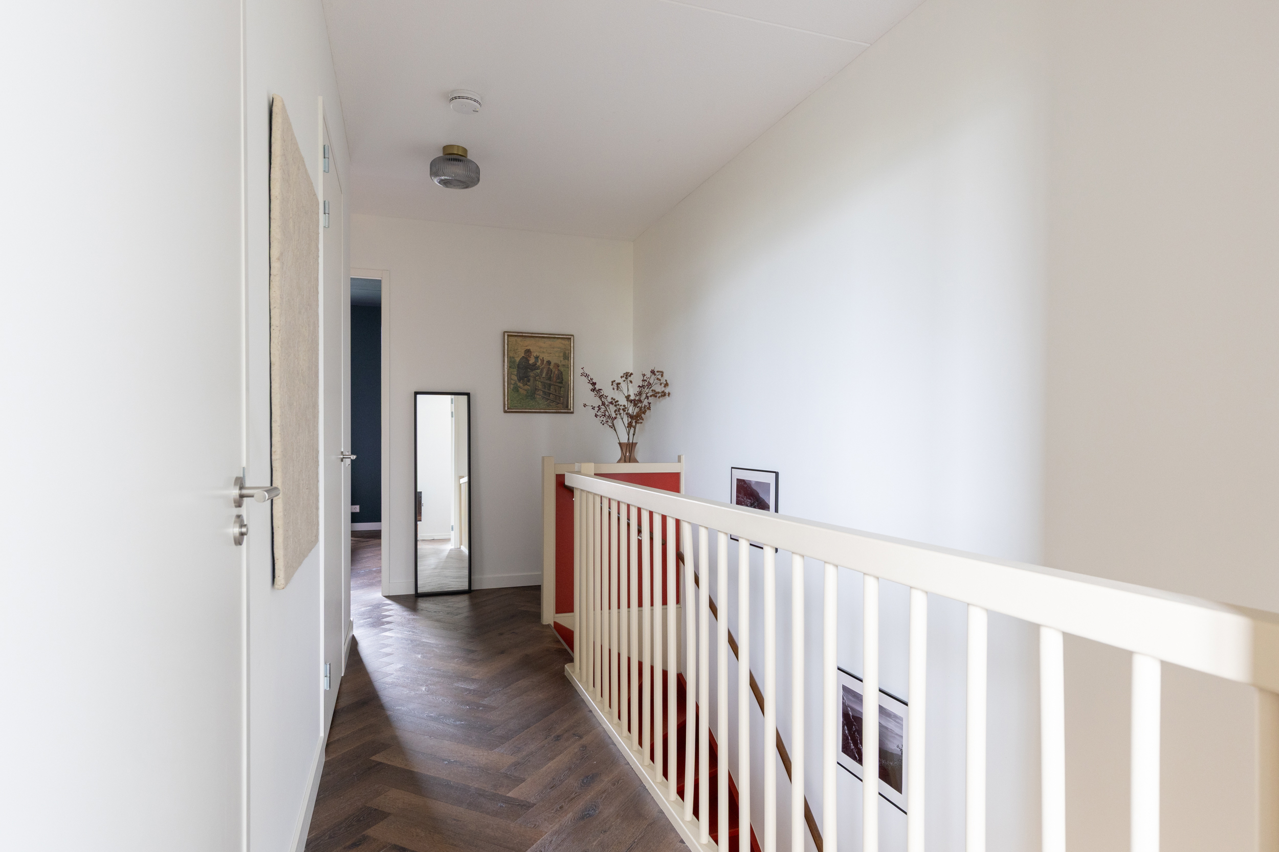 Middels een ruime overloop zijn alle vertrekken bereikbaar. De ruime slaapkamer aan de achterzijde is eenvoudig te splitsen in twee aparte kamers, je hebt enkel een wand en een deur te plaatsen, elektra, lichtpunten en ventilatie zijn hier al op voorbereid. Naast de ruime slaapkamer is er een inloopkast gerealiseerd. De slaapkamer aan de voorzijde biedt toegang tot het balkon op het westen. Een fijne plek om nog even in de middagzon te zitten. De badkamer is modern en comfortabel ingericht met een inloopdouche, dubbele wastafel, maatwerk door Rijksen, toilet en designradiator. Verder is er een aparte technische ruimte met bergruimte en wasmachineaansluiting.