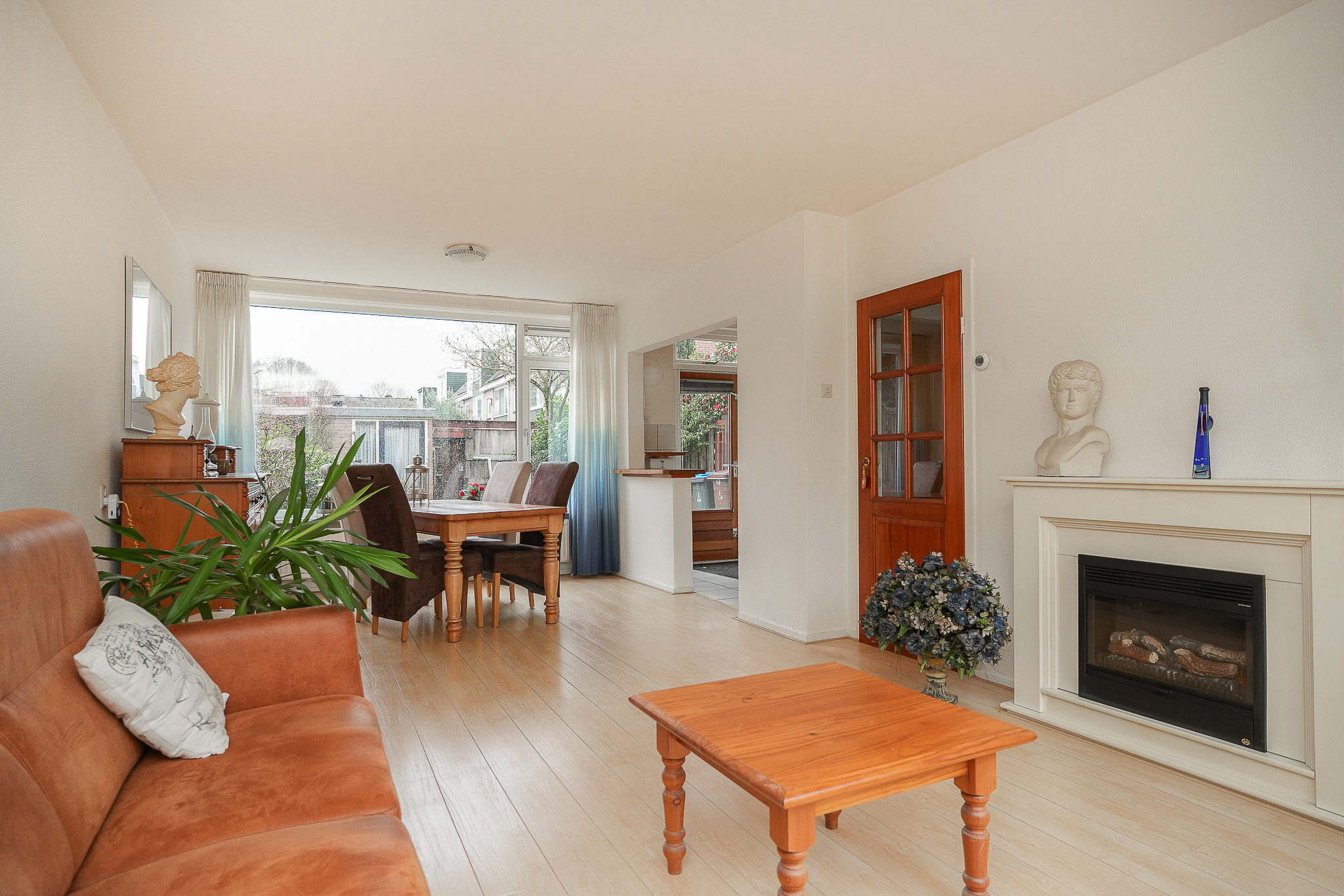 Je komt binnen in een ruime hal met toegang tot het separate toilet en de trap naar boven. Vanuit de hal loop je door naar de woonkamer, waar de grote raampartijen zorgen voor een prettige hoeveelheid daglicht. De elektrische open haard geeft de ruimte extra sfeer, perfect voor gezellige avonden. Aan de voorzijde bevindt zich de zitkamer. Aan de achterzijde, aansluitend aan de open keuken, is volop ruimte voor een grote eettafel waar je heerlijk lang kunt tafelen met uitzicht op de tuin.