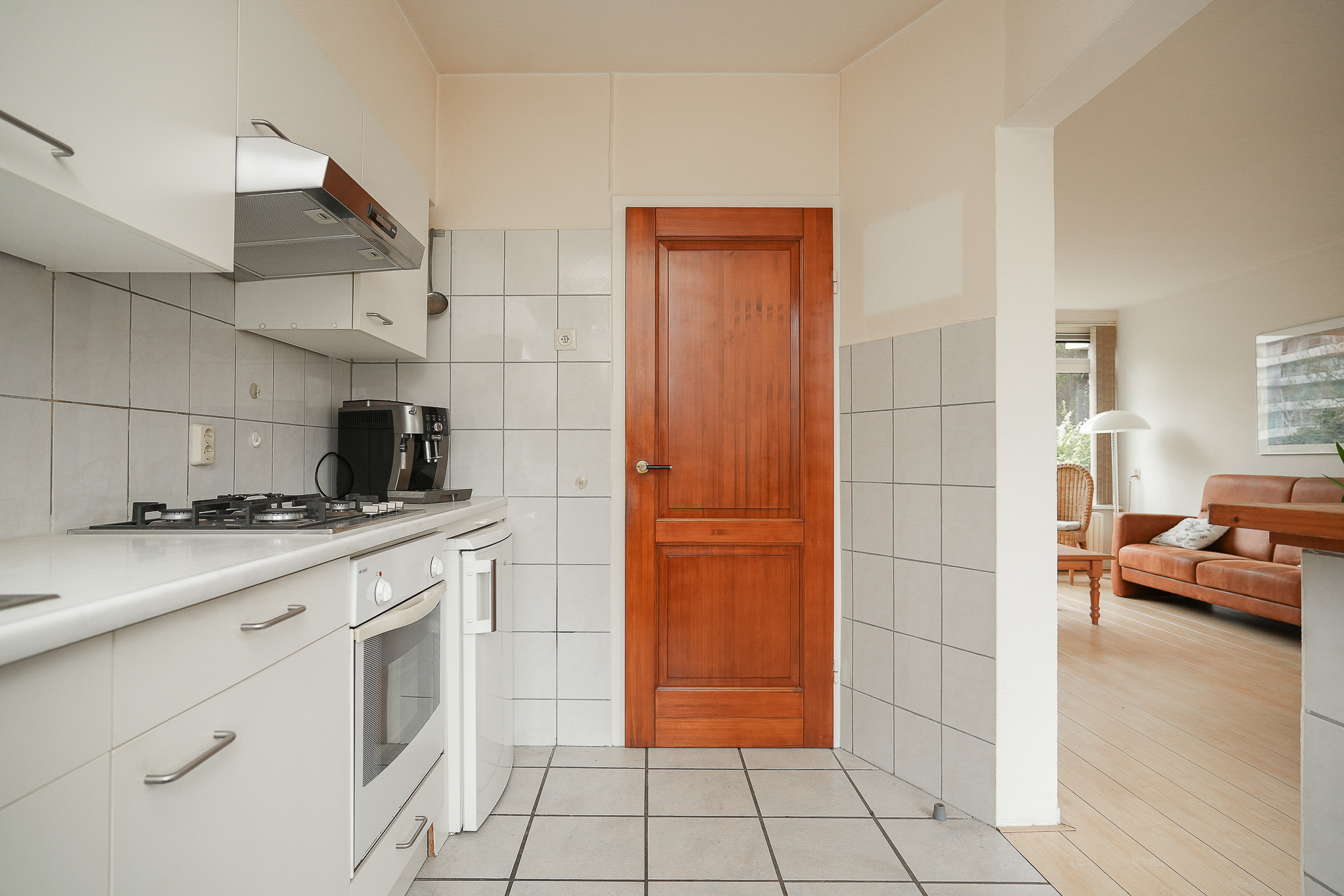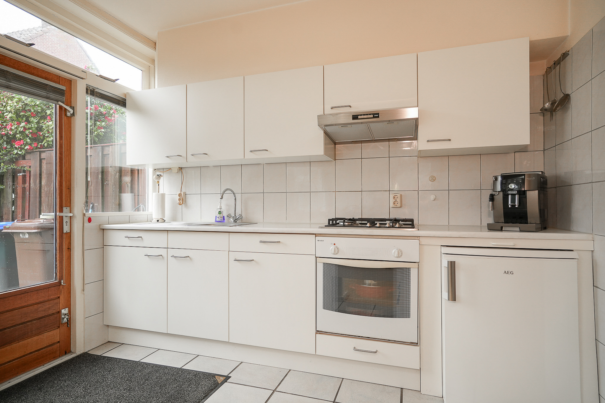 De open keuken is voorzien van een 4 pits gaskookplaat, afzuigkap, oven en koelkast. Vanuit de keuken heb je direct toegang tot de tuin én een praktische doorgang naar de hal.