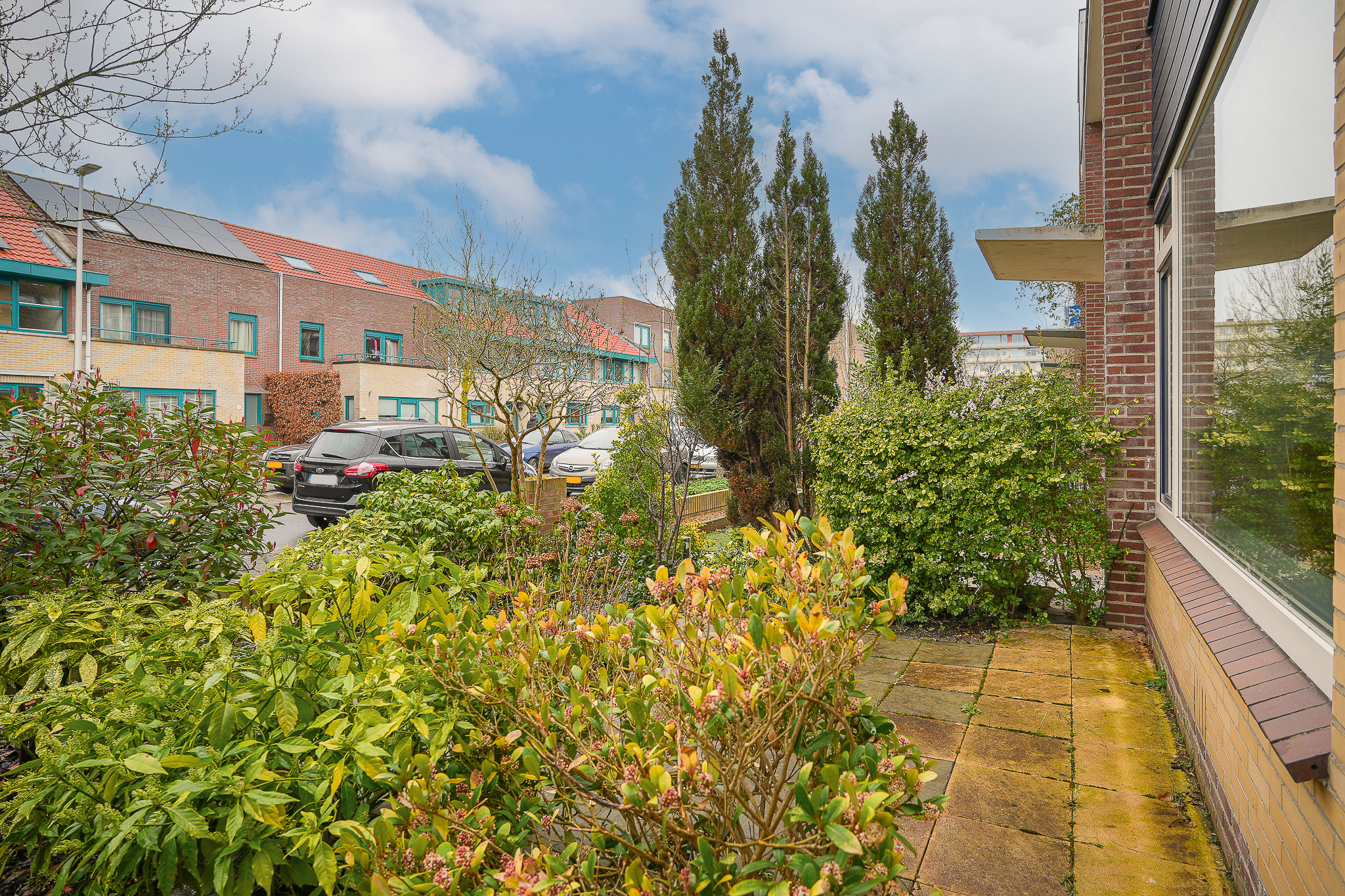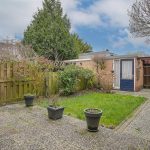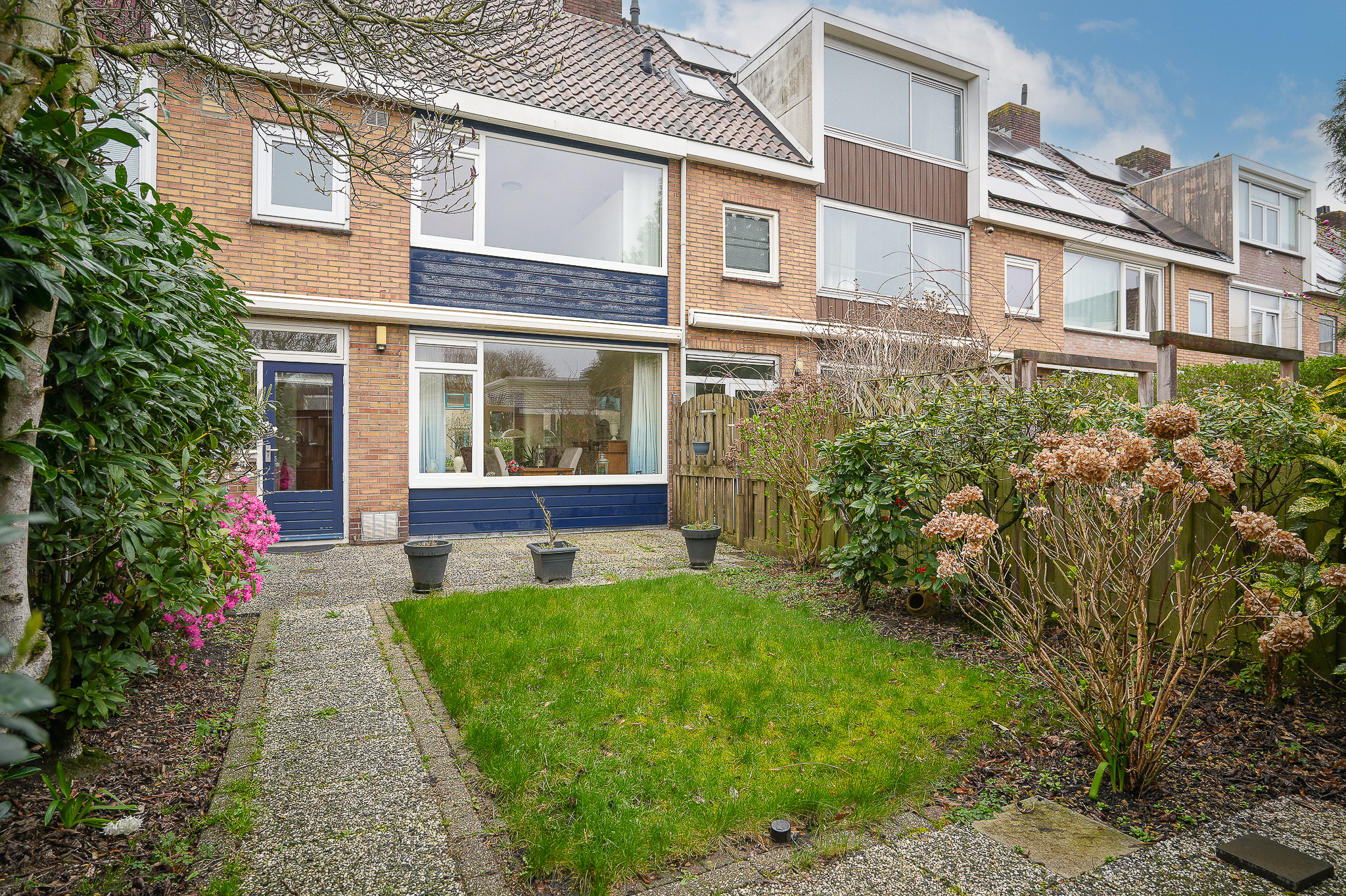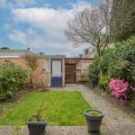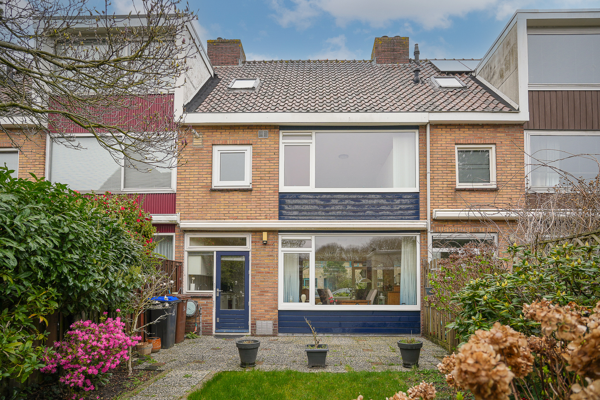 De achtertuin ligt op het zonnige zuidwesten, waardoor je hier heerlijk kunt genieten van de middag en avondzon. Met een zonnescherm creëer je eenvoudig een fijne schaduwplek op warme dagen. Achterin de tuin staat een stenen berging en dankzij de achterom is de tuin ook praktisch in gebruik.