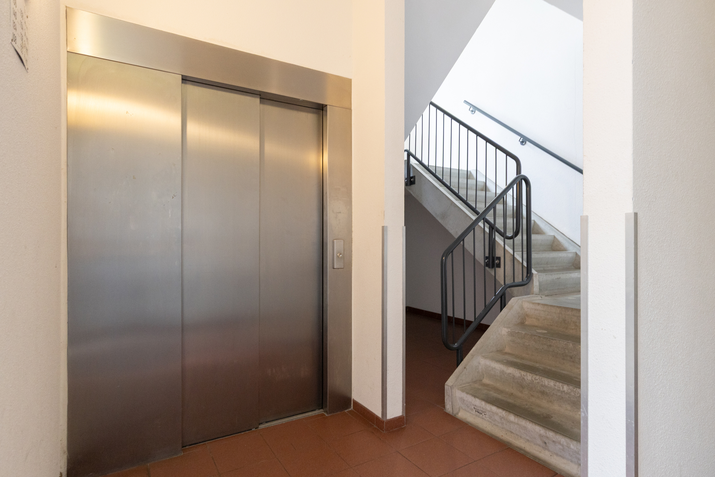 Gemeenschappelijk entree, met toegang tot de lift en trap, daarnaast vind je op de begane grond de gemeenschappelijke fietsenberging en de parkeerplaats (achter de het complex)