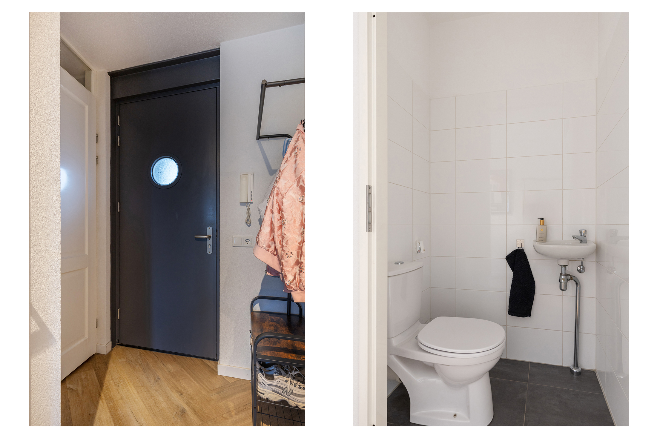 Verder vindt je in de hal, een modern toilet met fonteintje en een royale inpandige berging met cv-opstelling (Intergas 2008), mechanische ventilatie én aansluiting voor de wasmachine en droger.