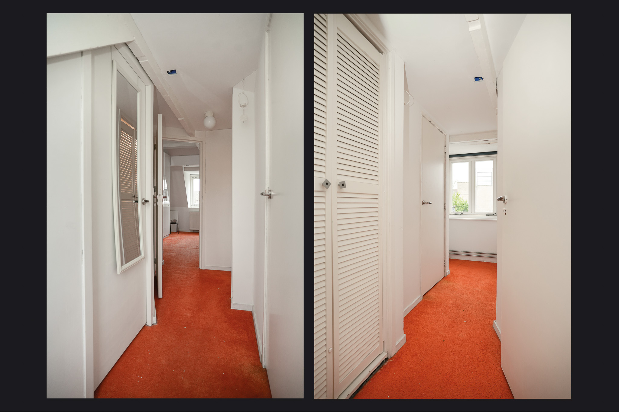 Vanuit de grote slaapkamer bereik je de entresol. Een slimme extra ruimte die vooral ideaal is voor opslag, zoals koffers en seizoensspullen. Tegelijk geeft deze verdieping een ruimtelijk effect en extra lichtbeleving in de slaapkamer.