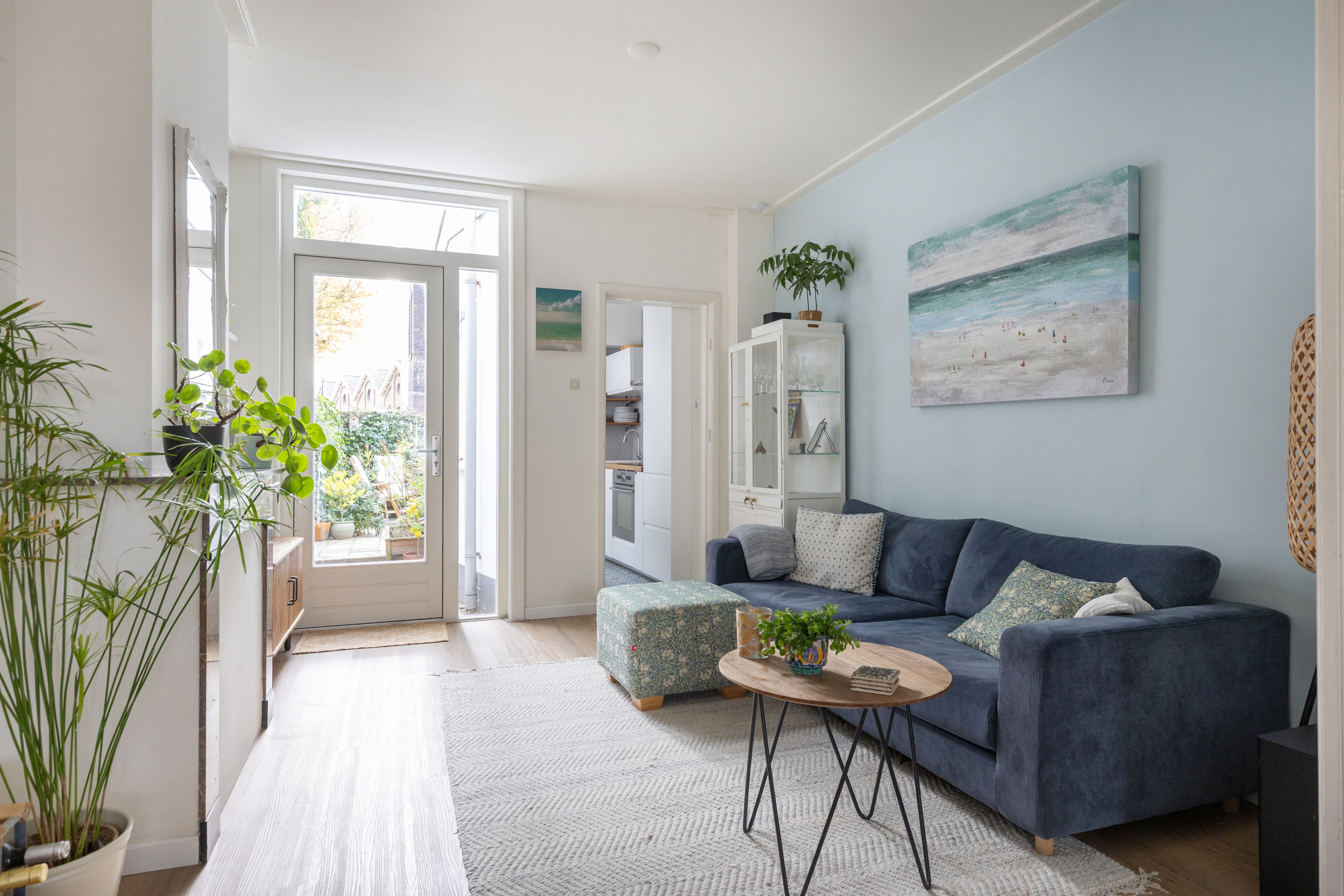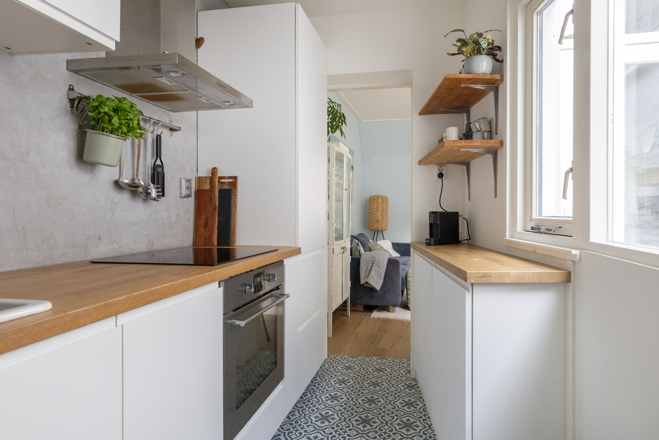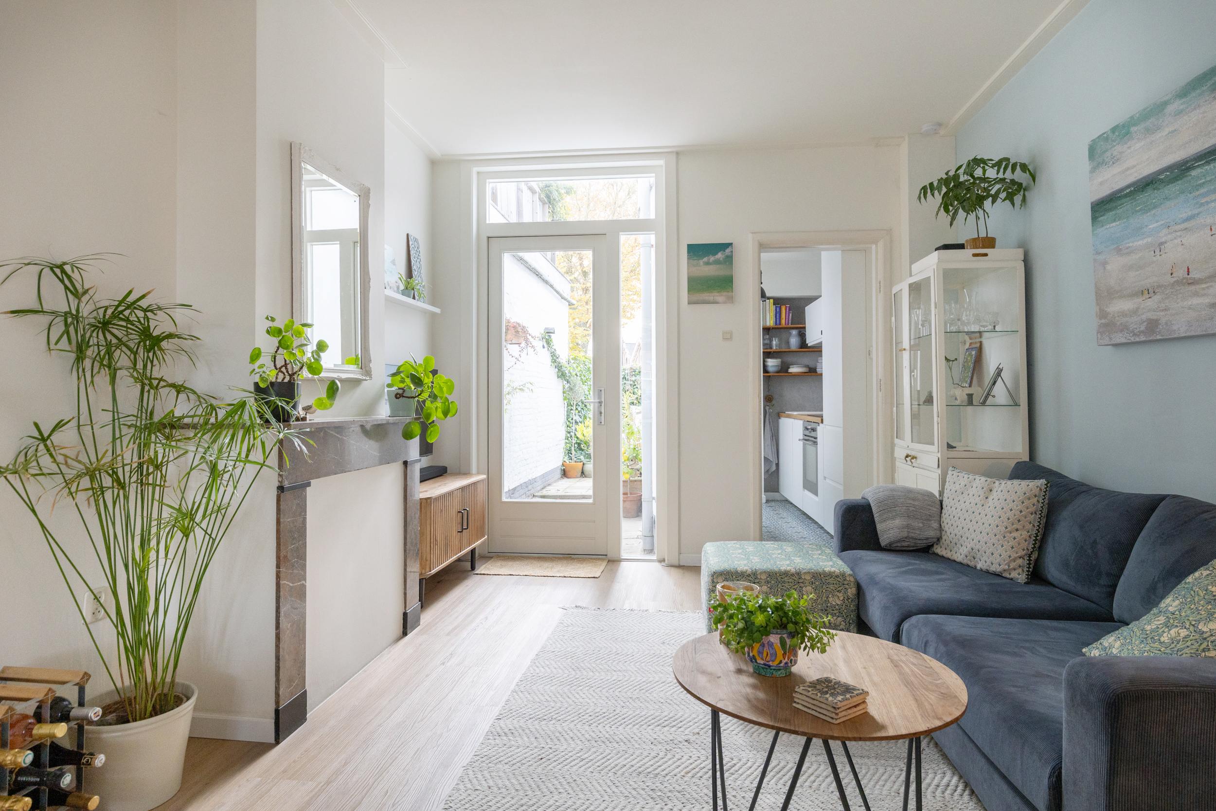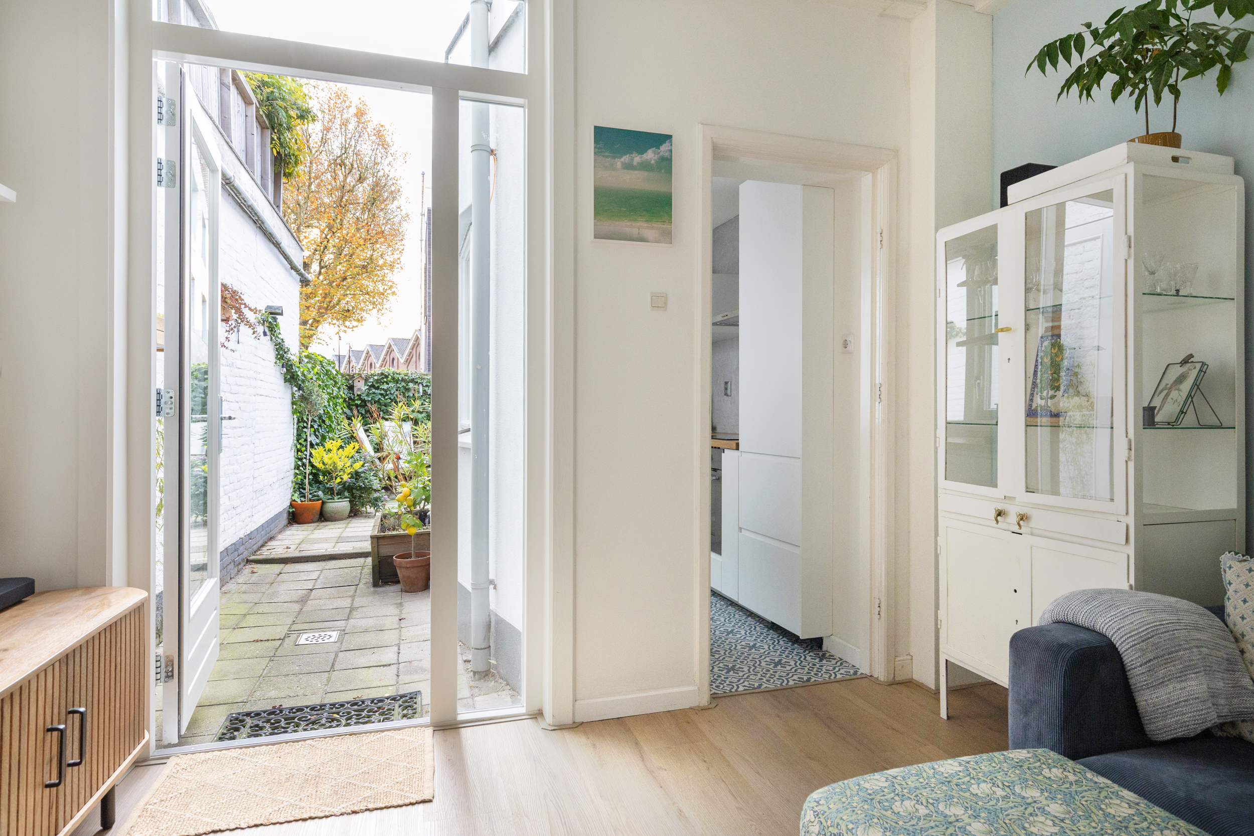 Via de nieuwe openslaande deur in de woonkamer stap je zo de zonnige tuin in. De gehele benedenverdieping is in 2024 voorzien van een volledig vernieuwde betonnen vloer met comfortabele vloerverwarming.