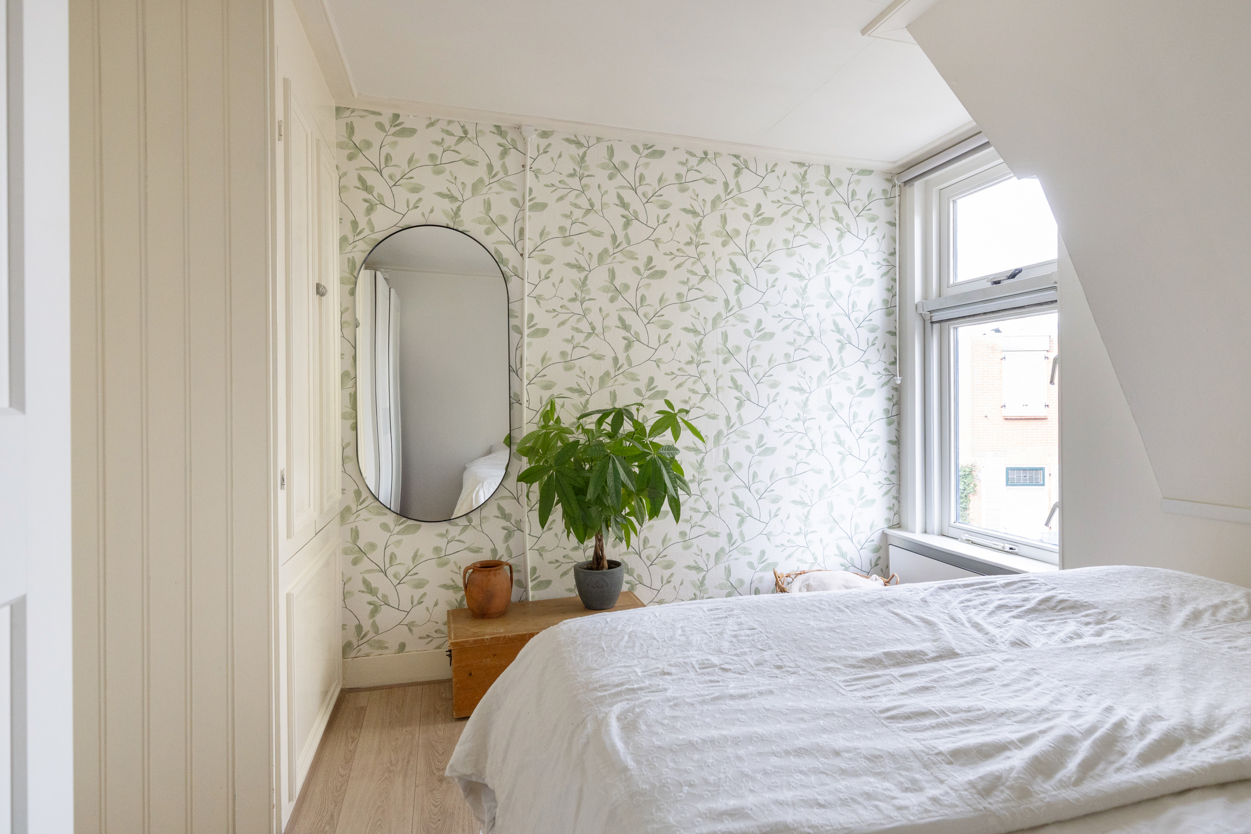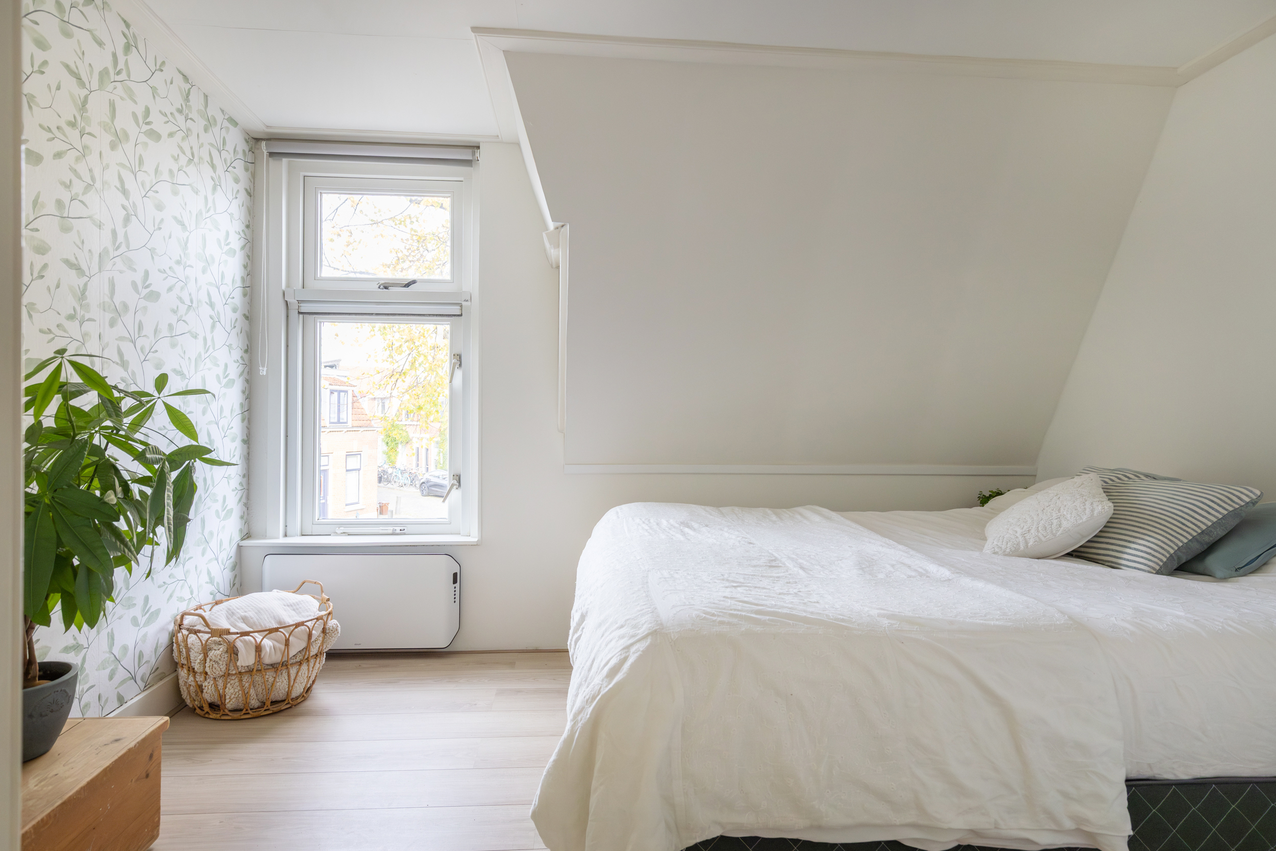Boven bevinden zich twee slaapkamers. De slaapkamer aan de achterzijde beschikt over witgoedaansluitingen en is in te richten als praktische wasruimte, slaapkamer of thuiskantoor. Dankzij de dakkapel voelt deze ruimte extra licht en ruim. De slaapkamer aan de voorzijde fungeert als master bedroom en beschikt over een vaste kast.