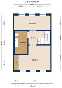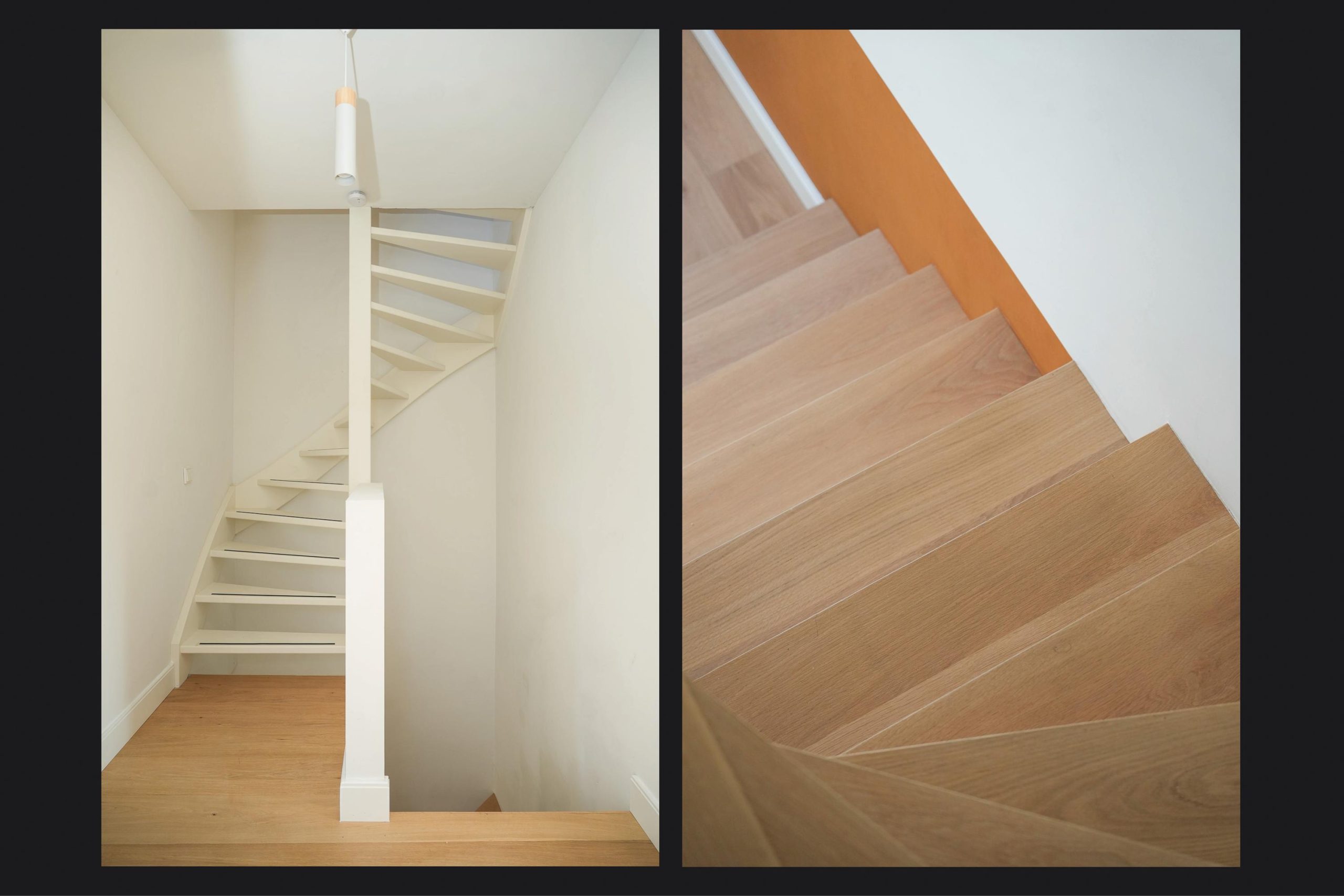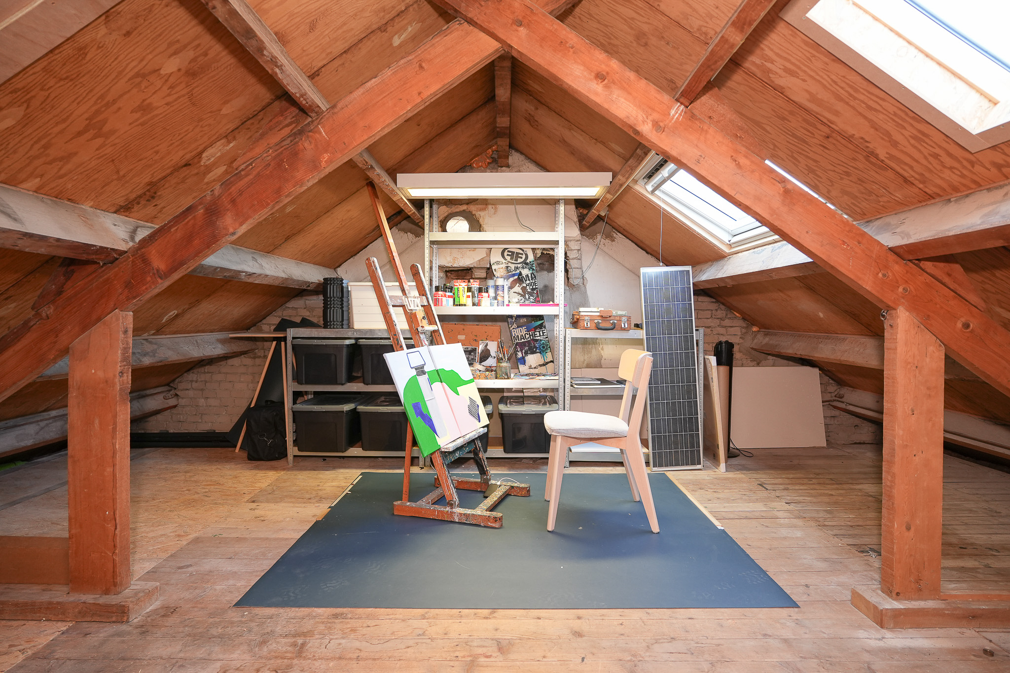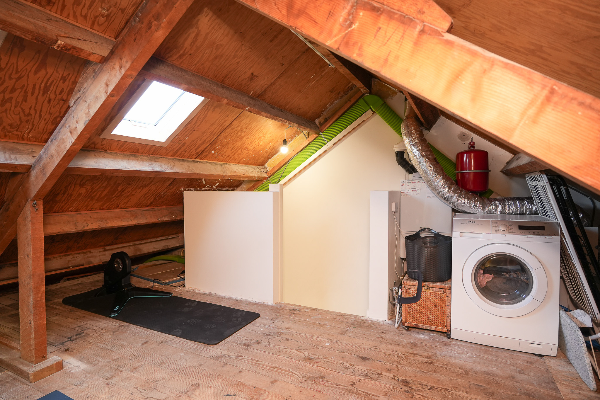 Via een vaste trap bereik je de tweede verdieping. Hier bevinden zich de cv installatie en de aansluitingen voor het witgoed. Deze verdieping is momenteel nog een echte zolderverdieping, maar biedt veel potentie.