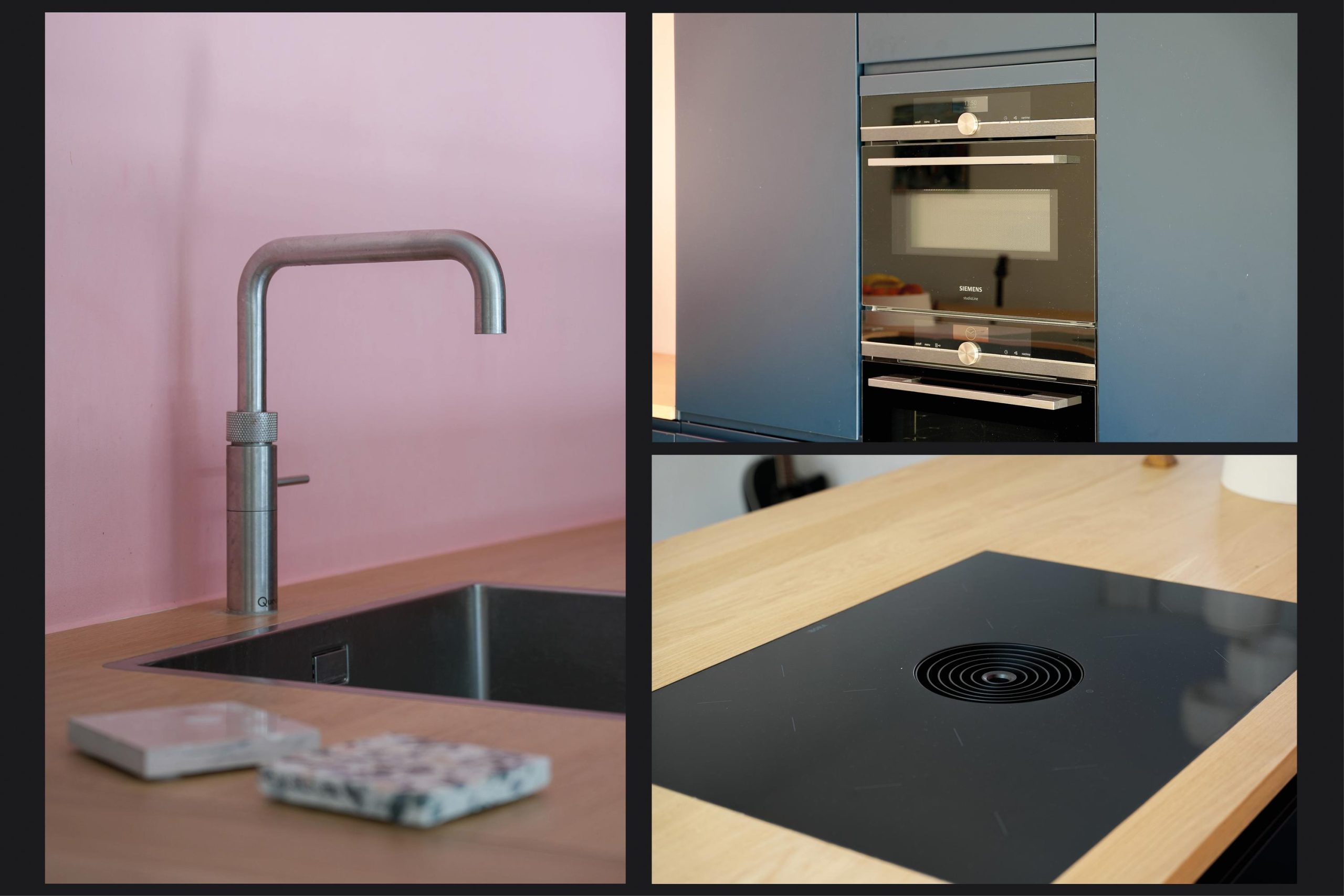 De moderne woonkeuken is voorzien van een stoomoven, combi oven met magnetron, vaatwasser, Quooker, koelkast, vriezer en een vierpits inductiekookplaat met afzuigkap. De begane grond is volledig voorzien van vloerverwarming.