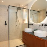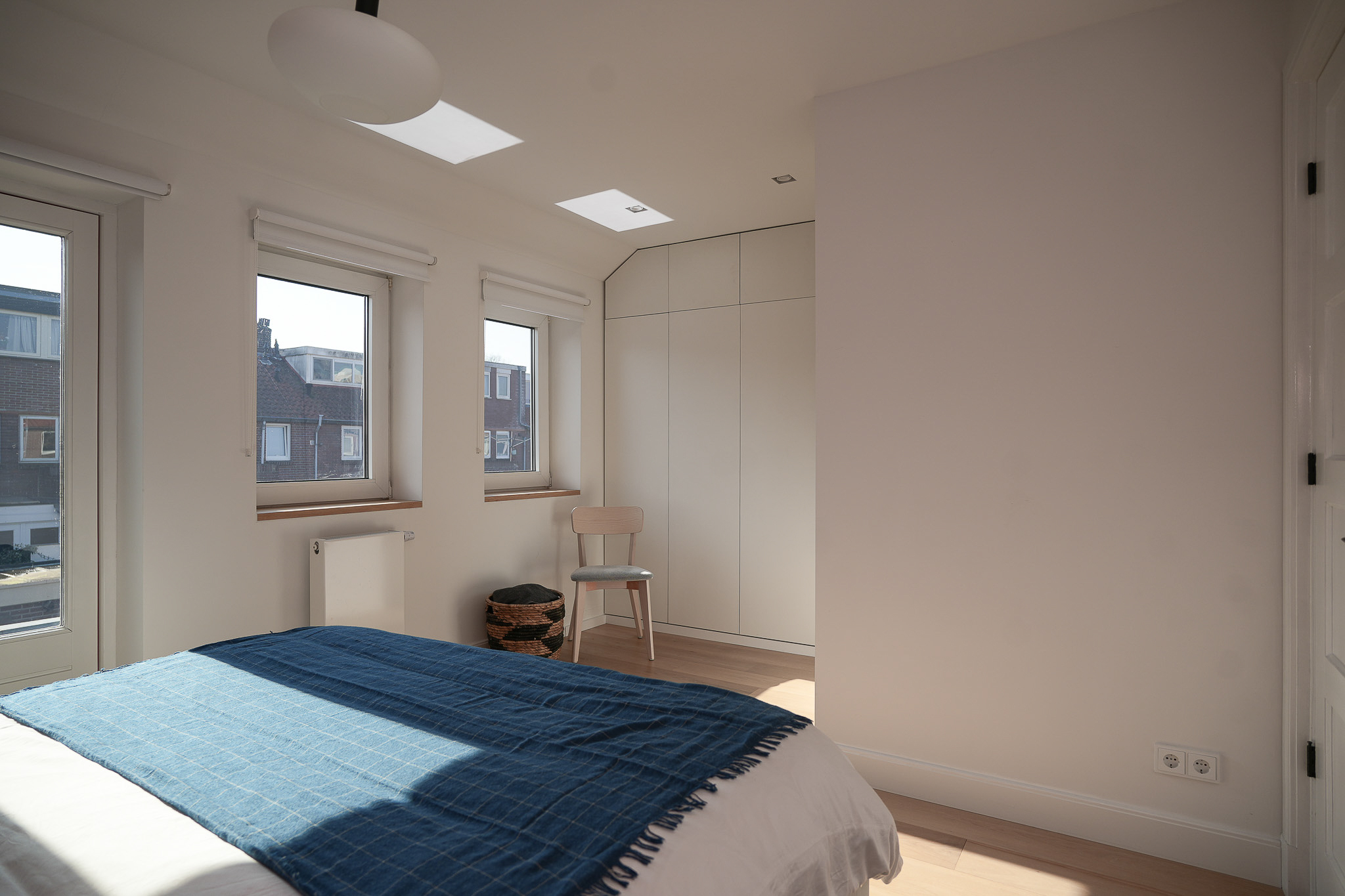 De strakke en moderne afwerking van de woning loopt hier mooi door. Op deze verdieping bevinden zich twee slaapkamers over de volle breedte van de woning en een moderne badkamer.