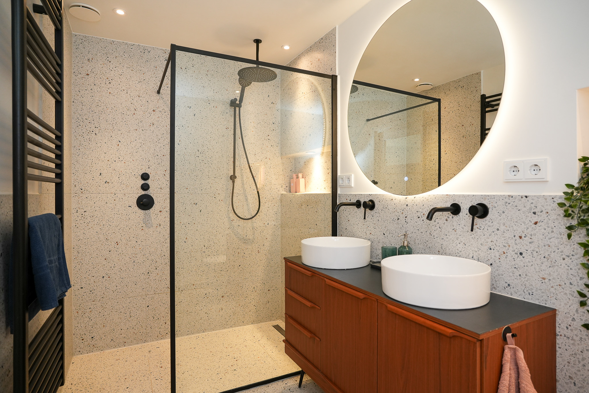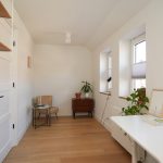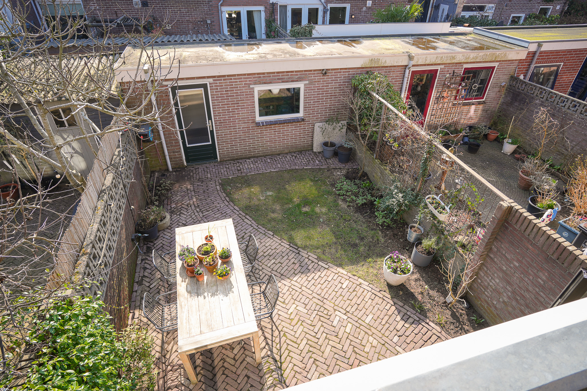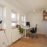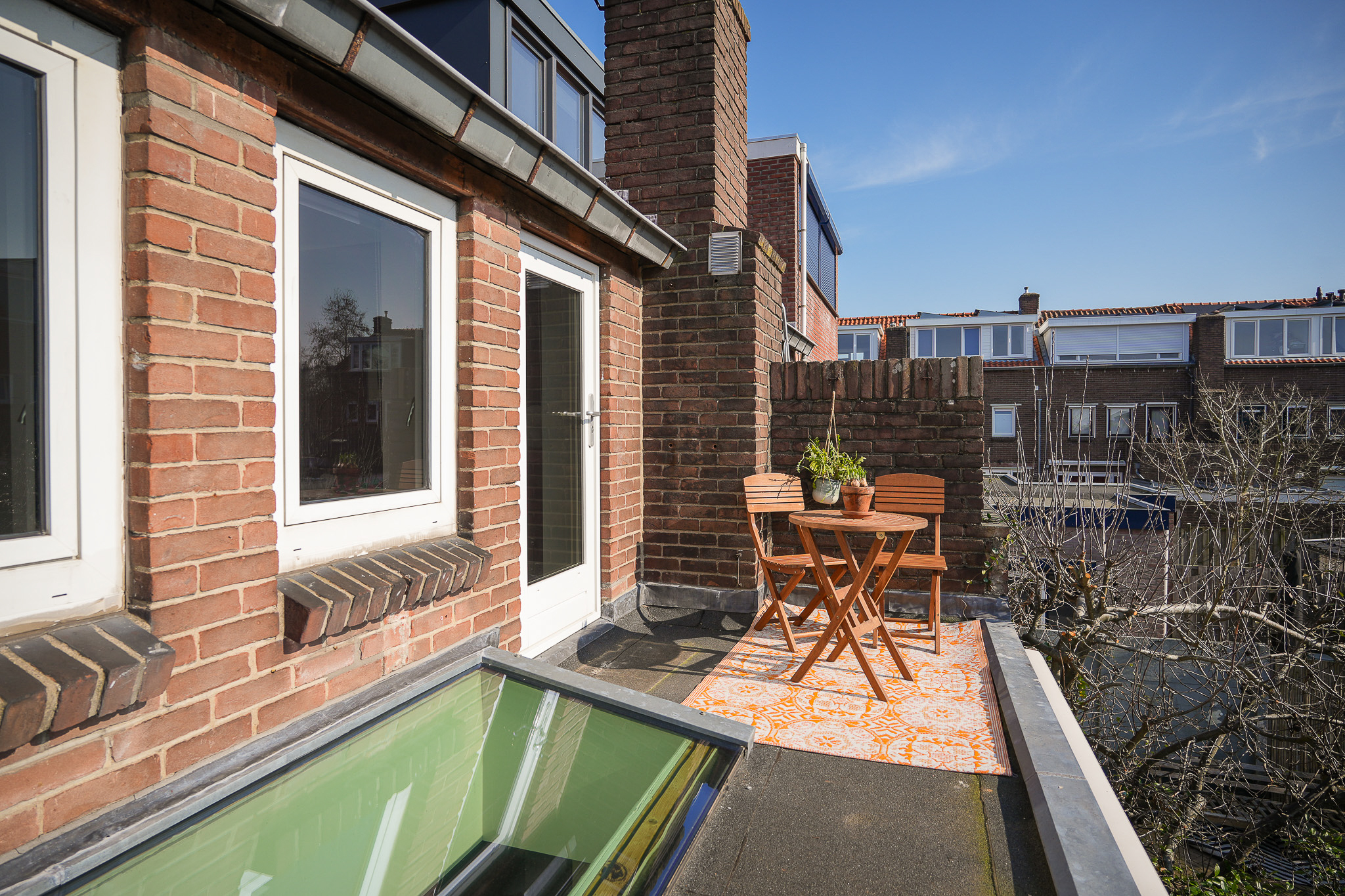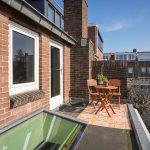 De slaapkamer aan de achterzijde is heerlijk licht, beschikt over een vaste kast en heeft een deur naar het dak met uitzicht op de tuin. De badkamer is stijlvol afgewerkt en voorzien van een inloopdouche, een dubbel wastafelmeubel, een toilet en comfortabele vloerverwarming.
