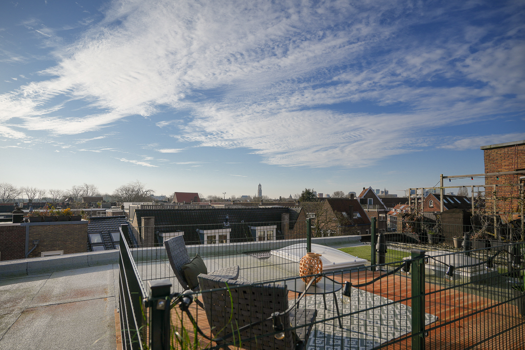 Als het lekker weer is, is dit dé plek waar je wilt zijn. Op het dakterras heb je alle ruimte voor een loungeset en een eettafel, perfect voor borrels, barbecue-avonden of gewoon even ontspannen met een boek. Je kijkt weids uit over Tuinwijk en de Vogelenbuurt, met de stad Utrecht aan je voeten en een prachtig zicht op de Dom. Extra leuk detail. De straat is vernoemd naar Jan van Henegouwen, bijgenaamd Jan van den Doem, de eerste bouwmeester die het onderste deel van de Dom bouwde. Zo komt het uitzicht ineens met een stukje historie.