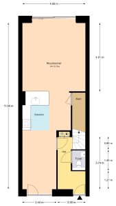 Aan de achterzijde van de woning bevindt zich het zitgedeelte, waar de hoge schuifpui van drie meter niet alleen veel daglicht binnenbrengt, maar in combinatie met het extra hoge plafond ook een bijzonder ruimtelijk gevoel geeft. Je kijkt uit op de achtertuin op het oosten, waar je tot het middaguur van de zon geniet. Achter de tuin ligt een goed onderhouden gemeenschappelijke tuin van circa 40 m². Er is ook een achterom aanwezig. In de woonkamer is een handige trapkast, ideaal voor extra opbergruimte.