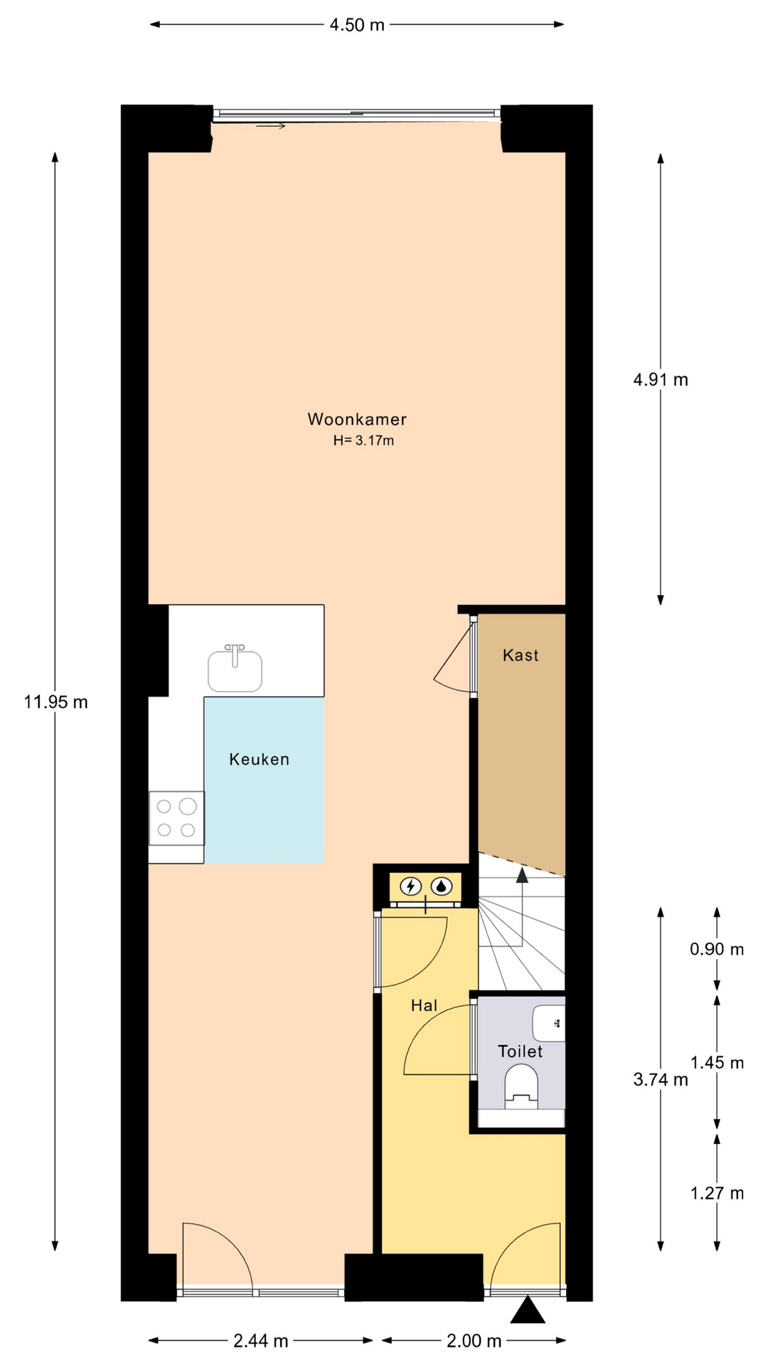 Aan de achterzijde van de woning bevindt zich het zitgedeelte, waar de hoge schuifpui van drie meter niet alleen veel daglicht binnenbrengt, maar in combinatie met het extra hoge plafond ook een bijzonder ruimtelijk gevoel geeft. Je kijkt uit op de achtertuin op het oosten, waar je tot het middaguur van de zon geniet. Achter de tuin ligt een goed onderhouden gemeenschappelijke tuin van circa 40 m². Er is ook een achterom aanwezig. In de woonkamer is een handige trapkast, ideaal voor extra opbergruimte.