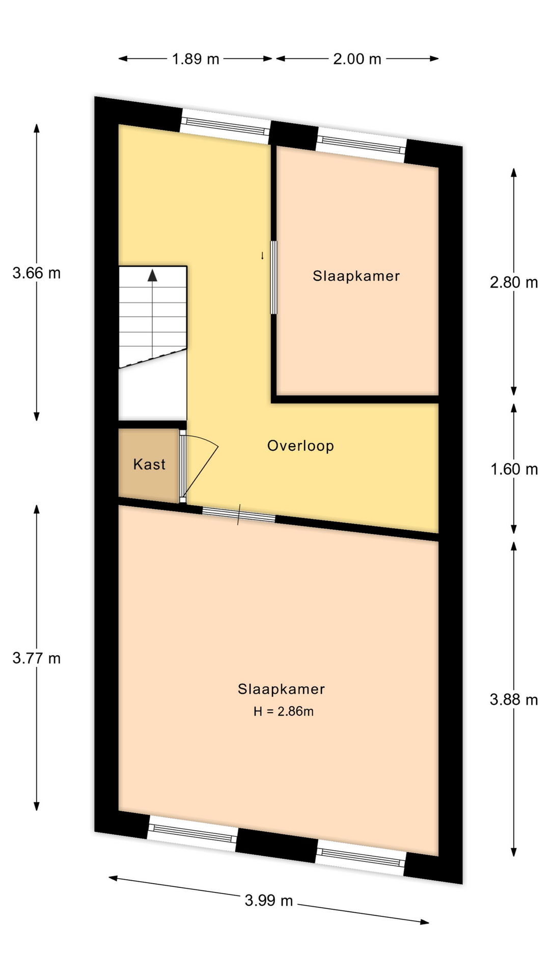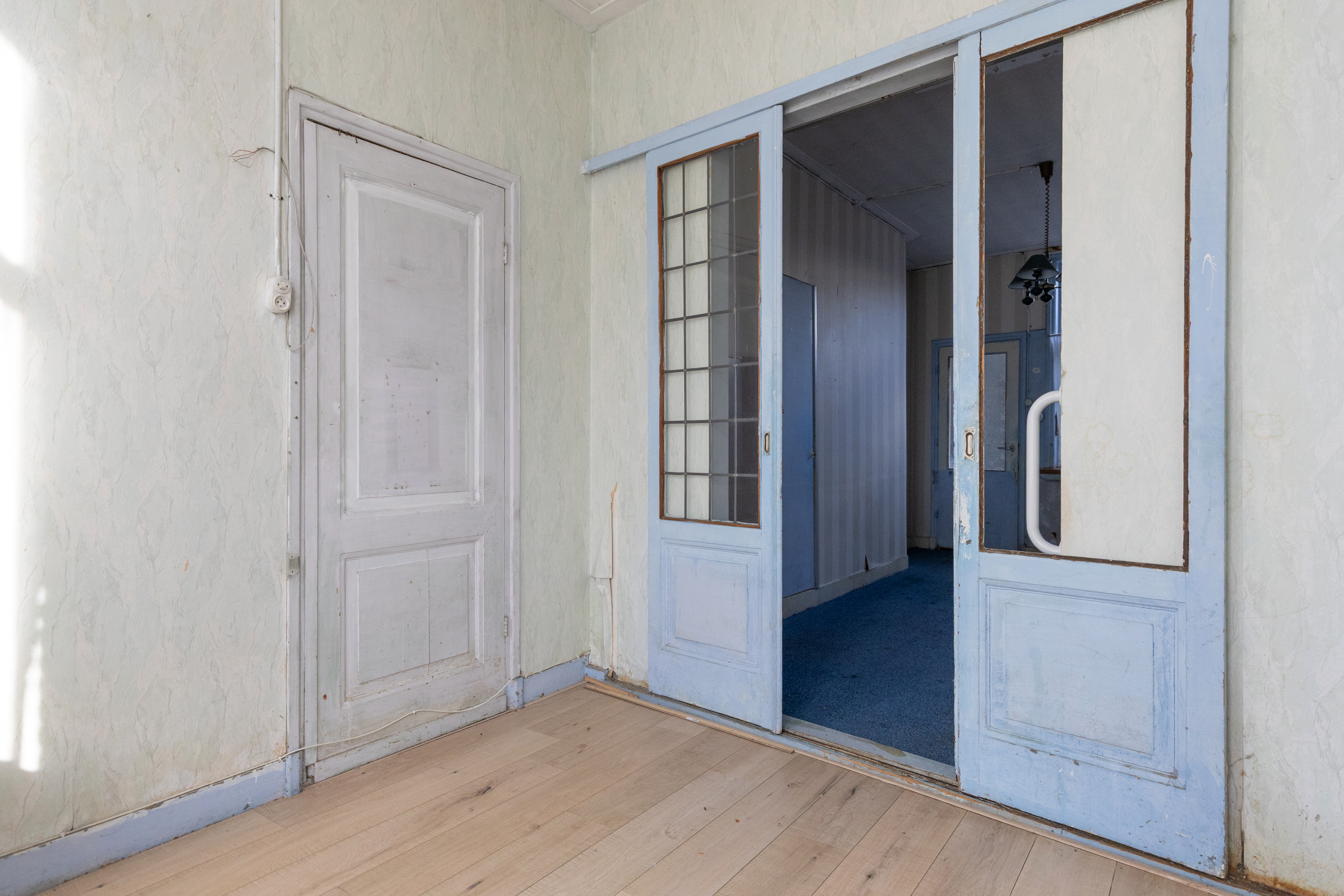 Op de eerste verdieping zijn nu twee slaapkamers aanwezig, maar de ruimte biedt volop mogelijkheden voor een andere indeling. Afhankelijk van je woonwensen is het zelfs mogelijk om meerdere kamers te creëren. De overloop beschikt over een vaste kast. De verdieping is eenvoudig afgewerkt en klaar om aangepakt te worden.