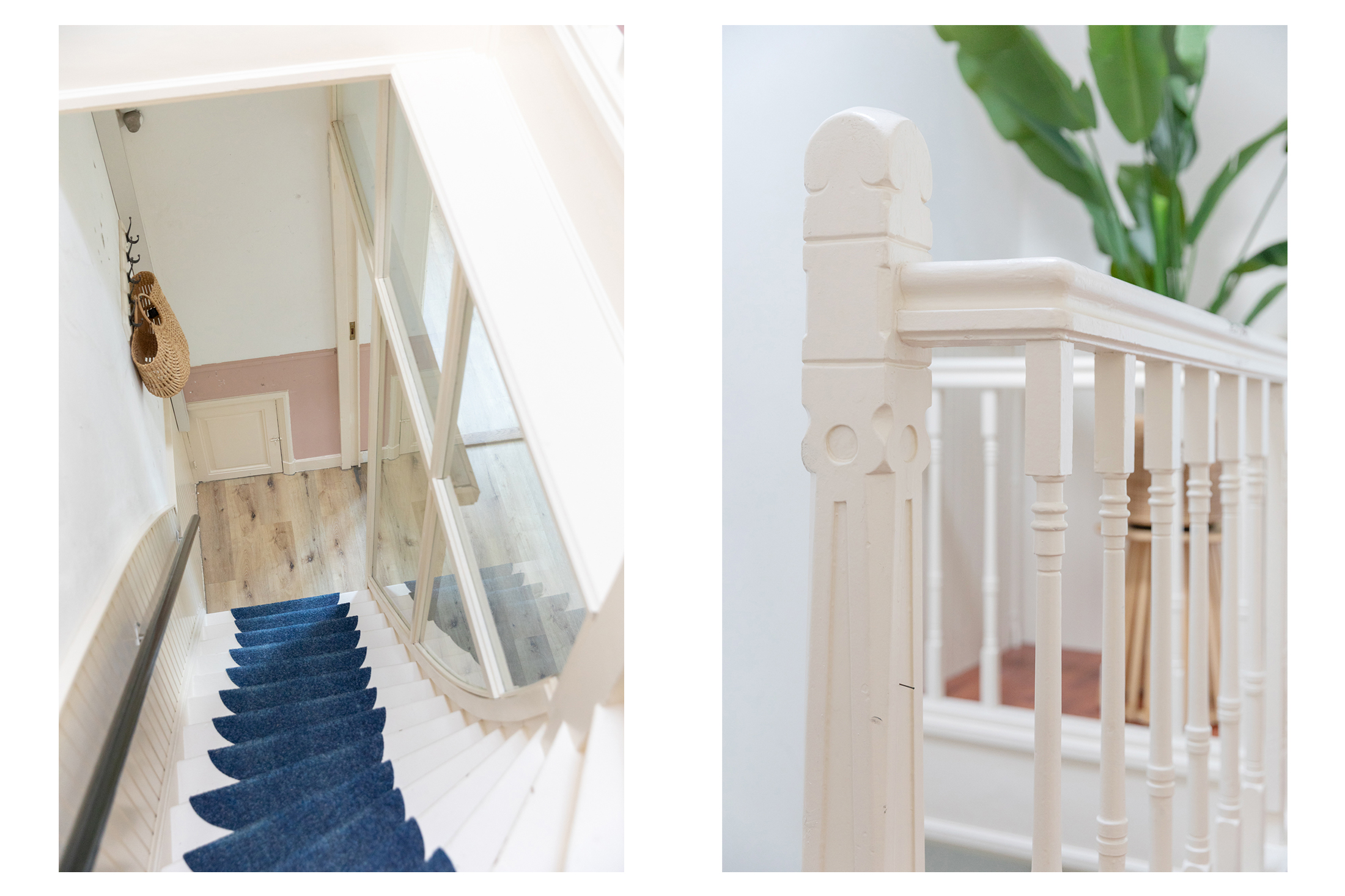 Op de tweede verdieping zorgt een dakraam boven de trap voor veel natuurlijk licht. Hier vind je een tweede keuken, compleet met vaatwasser, inductiekookplaat, oven en afzuigkap. In de drie ruime slaapkamers is het licht en comfortabel wonen. De kamer aan de achterzijde beschikt over dubbele deuren naar het tweede balkon en praktische kastruimte. Ook de tweede slaapkamer heeft een sfeervolle schouw.